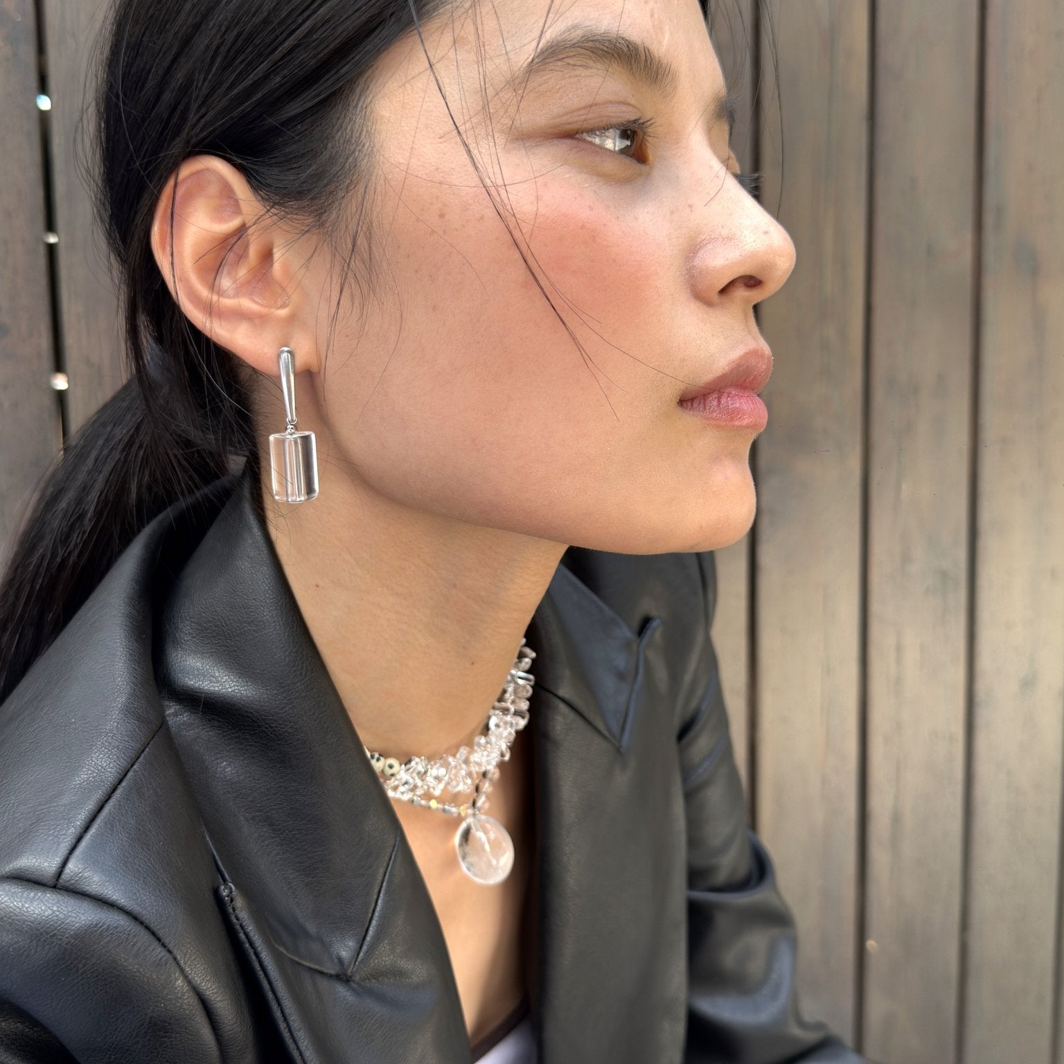 AMP UP YOUR VIBE EARRINGS | Cylinder Brazilian Clear Quartz