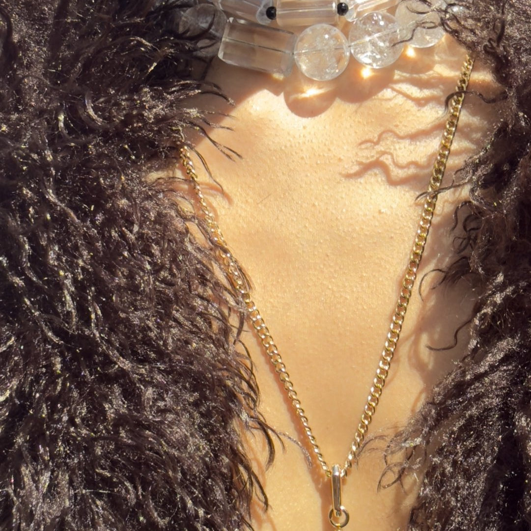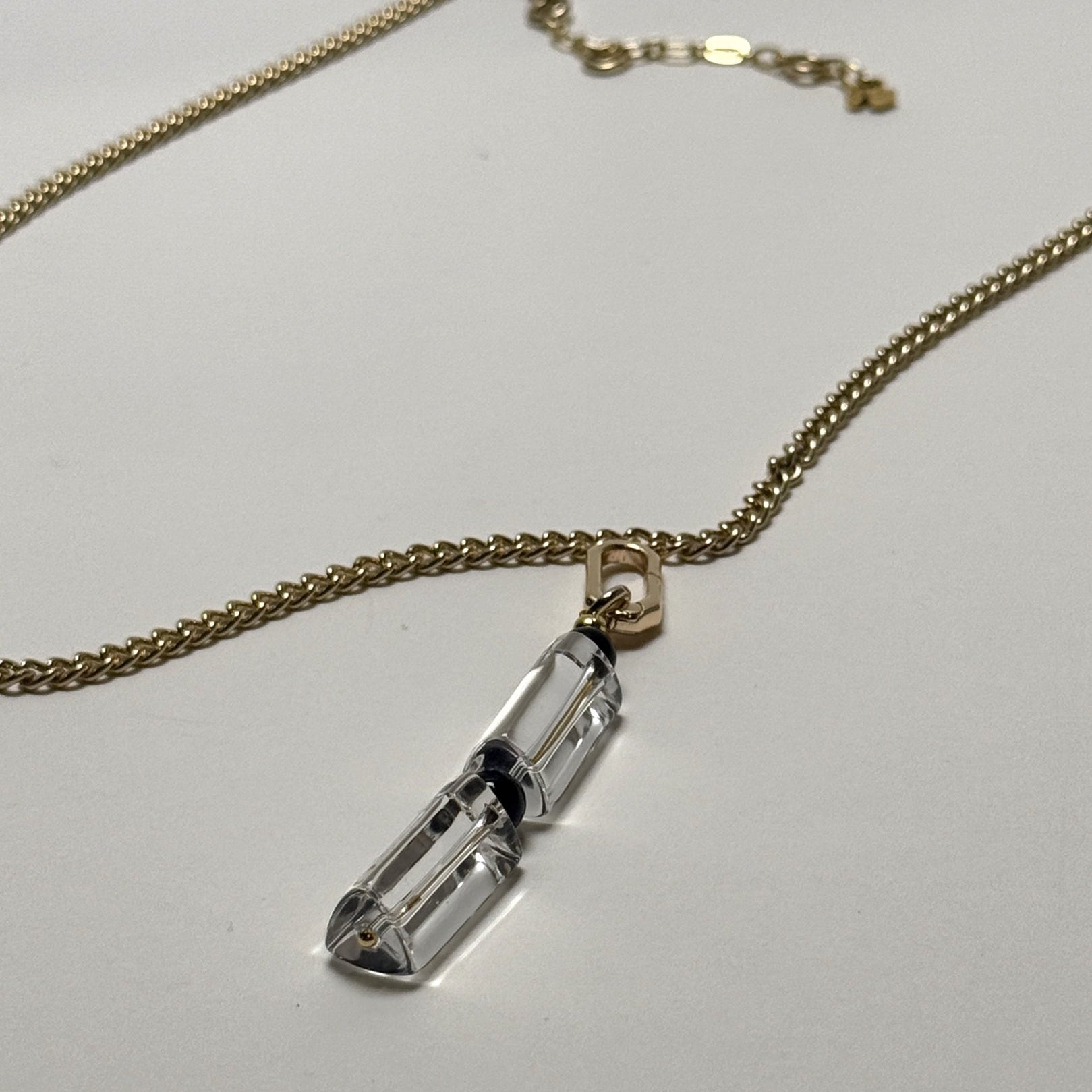 AMP UP YOUR VIBE NECKLACE | Brazilian Briolette faceted Clear Quartz pendant on 18K gold plated chain
