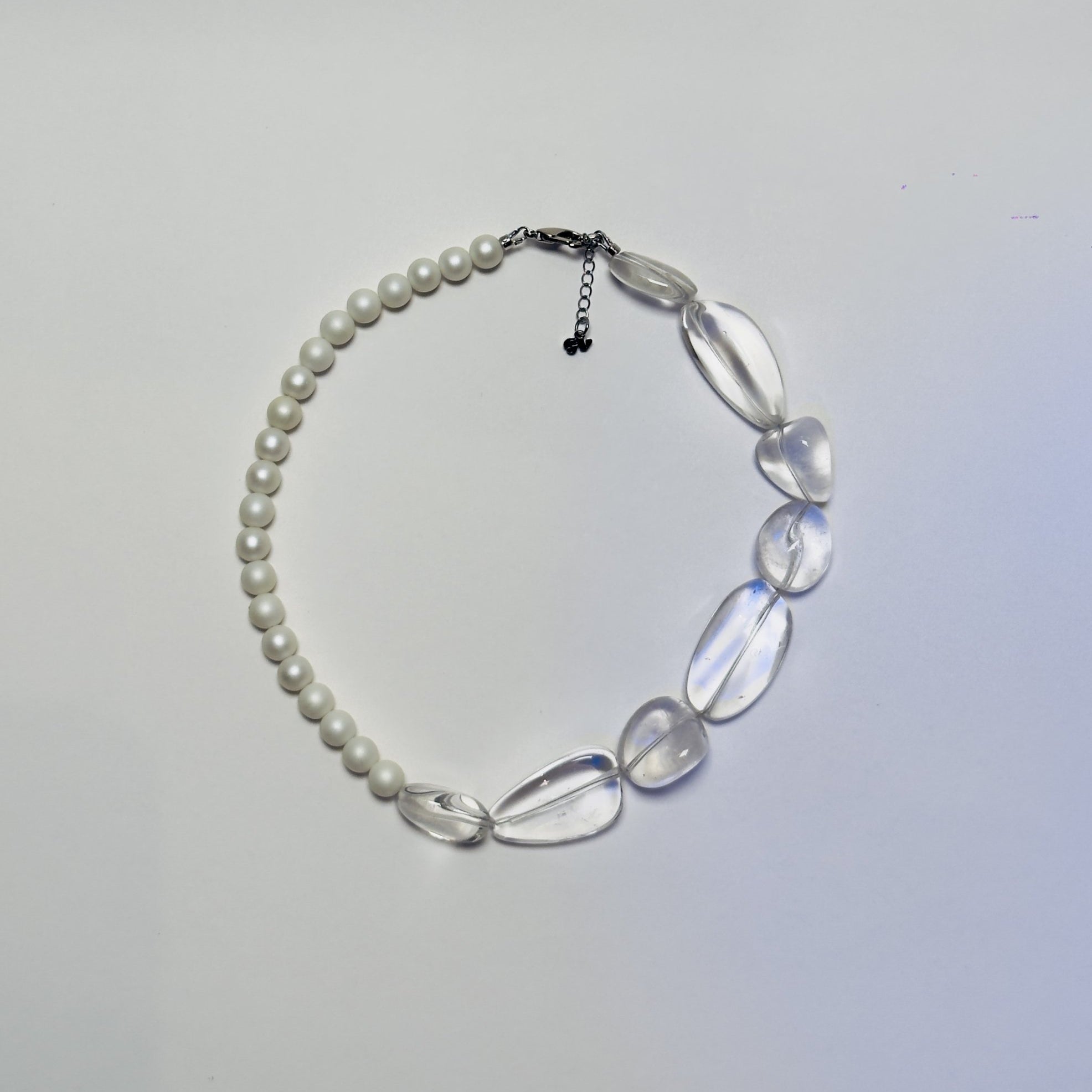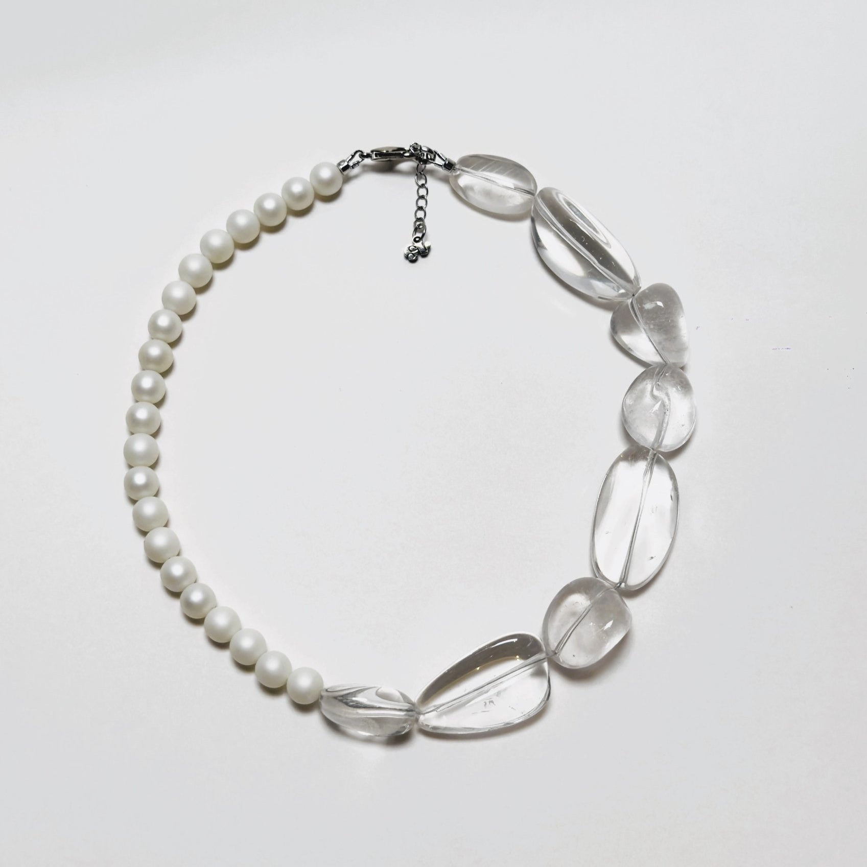 AMP UP YOUR VIBE NECKLACE | Brazilian Polished varied oval shaped Milky Quartz & Japanese matte white pearls