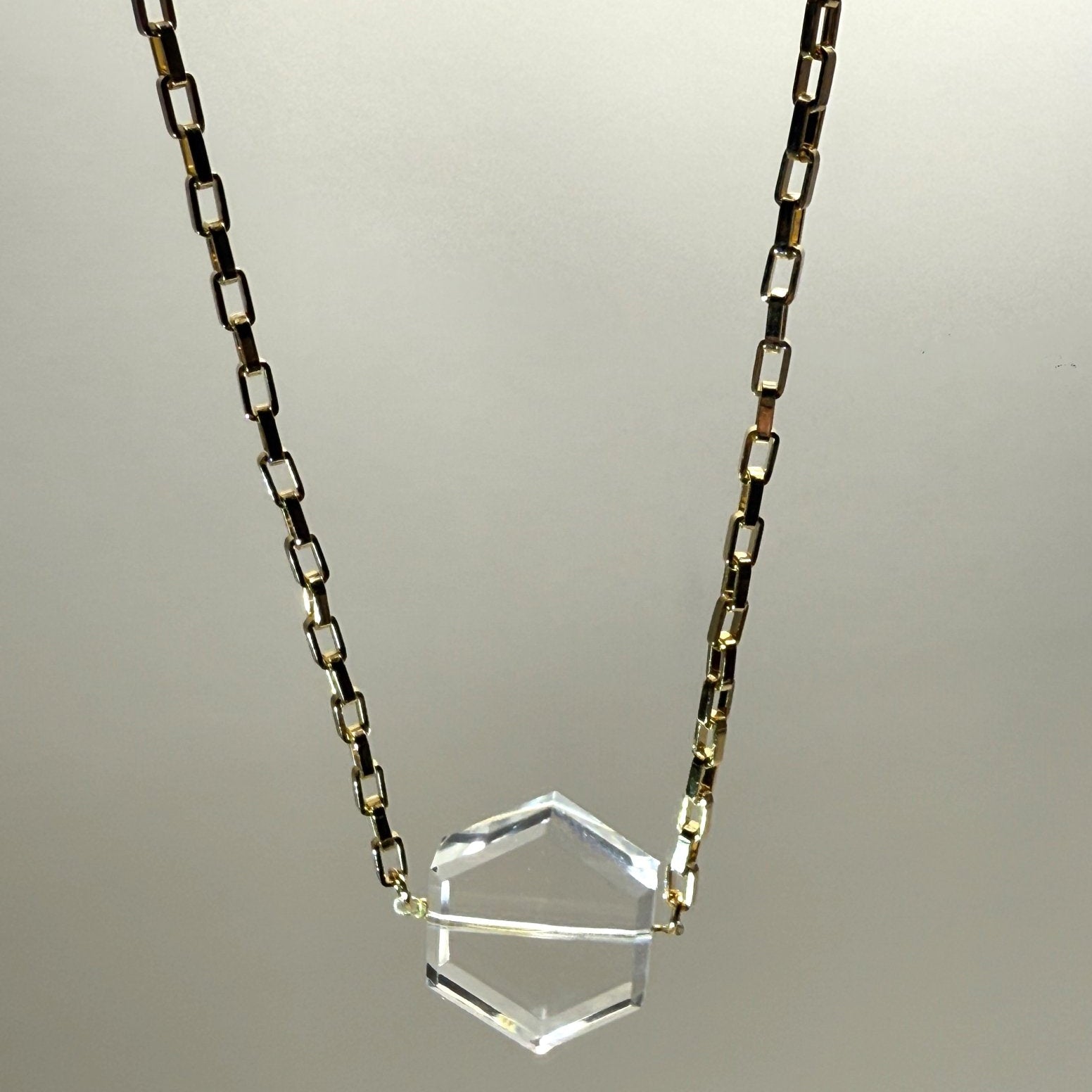 AMP UP YOUR VIBE NECKLACE | Brazilian Hexagon faceted Clear Quartz pendant on 18K gold plated chain
