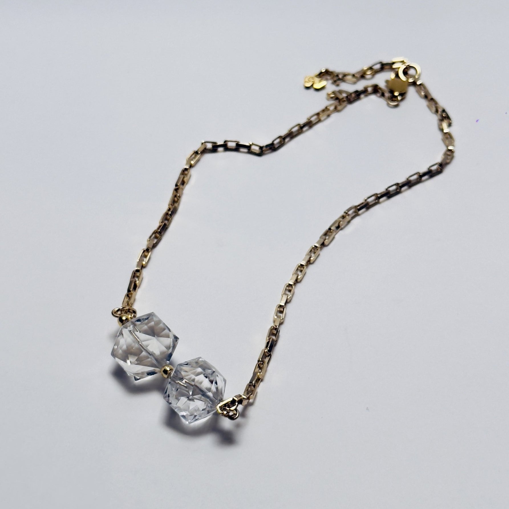 AMP UP YOUR VIBE BRACELET | Brazilian Barrel Cut Clear Quartz on 18K gold plated double loop chain