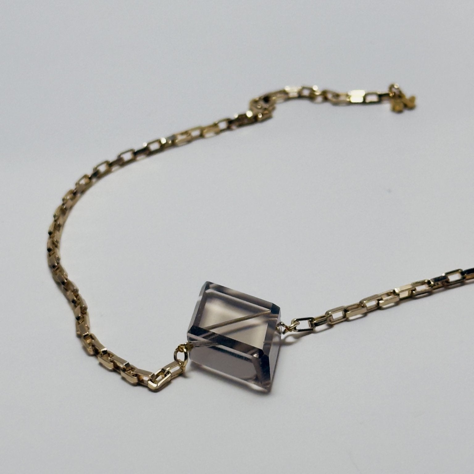 HEY TRANSFORMER NECKLACE | Brazilian Diamond faceted Smoky Quartz on 18K gold plated chain