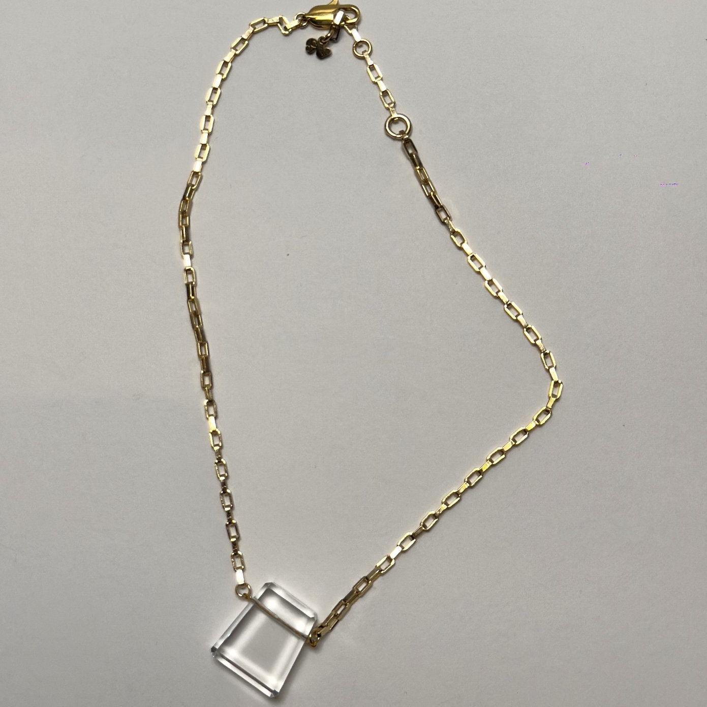 AMP UP YOUR VIBE NECKLACE | Brazilian Trapezoid faceted Clear Quartz Pendant on 18K gold plated chain