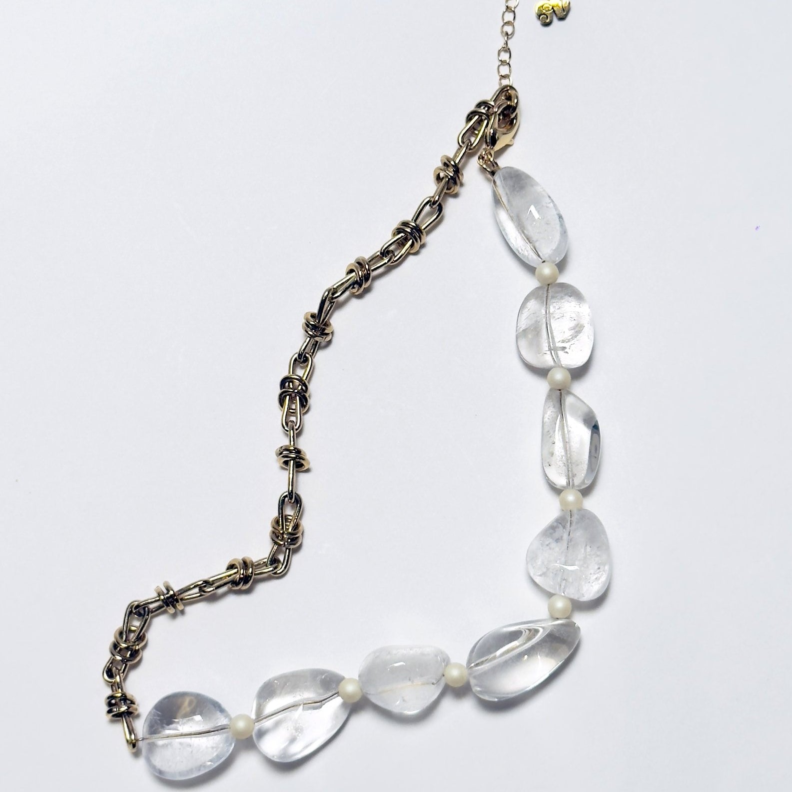 IT'S A JOYRIDE NECKLACE | Brazilian Clear Quartz nuggets & round sphere Dalmatian Jasper