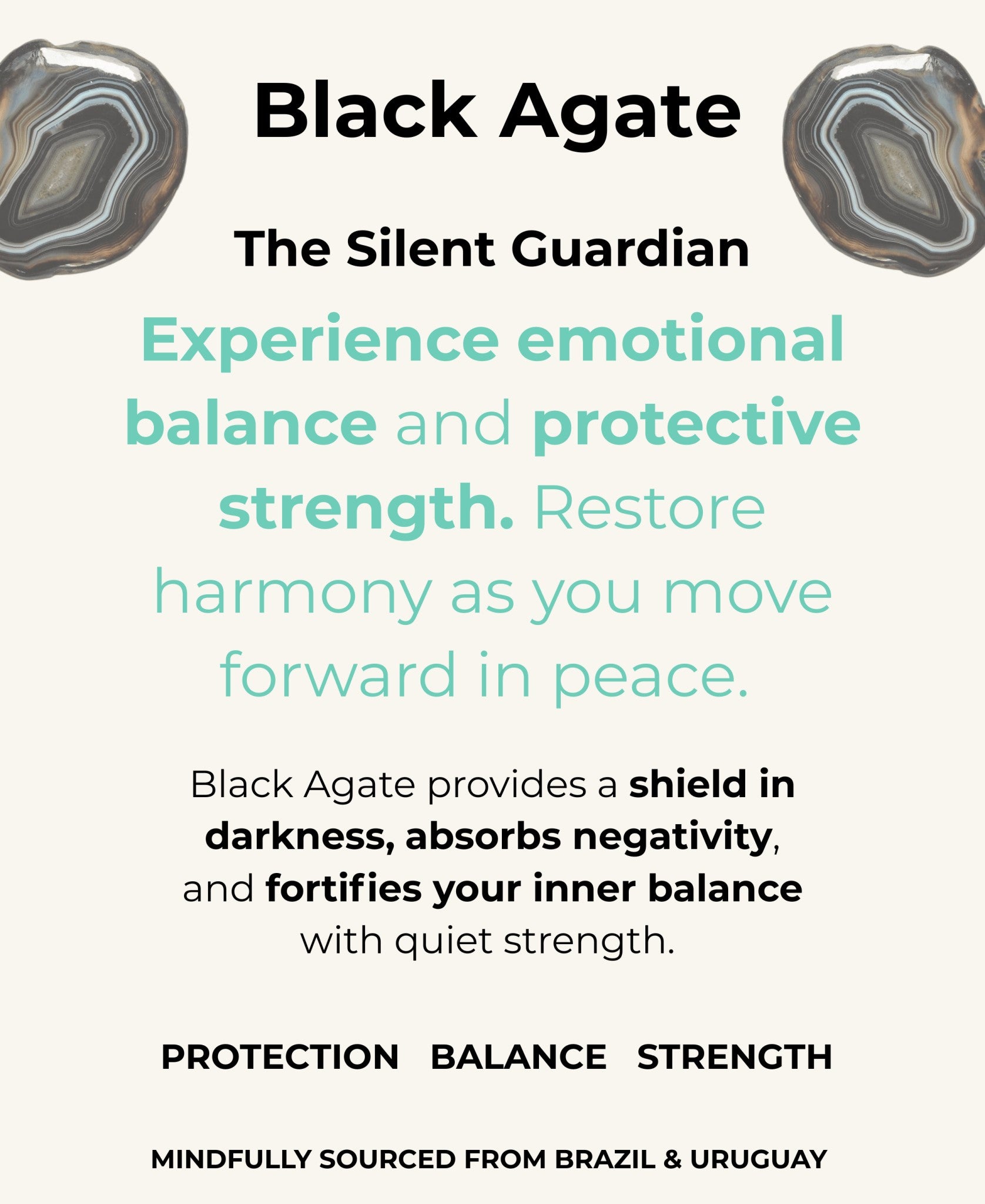 • Black Agate (The Shield): It absorbs negativity and grounds your energy like an anchor. It’s your digital bodyguard, keeping stress and bad vibes at bay.