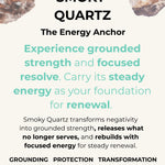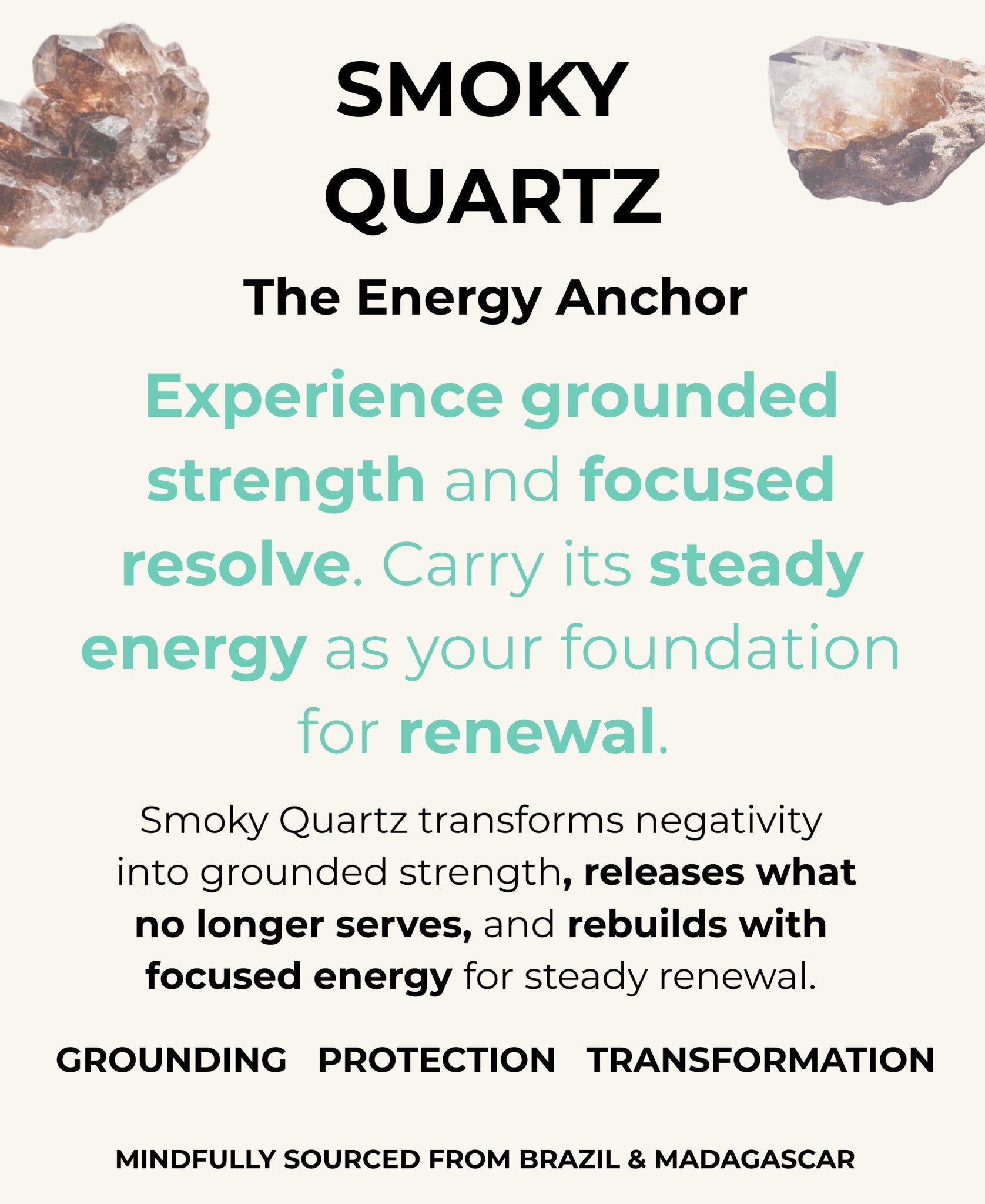 • Smoky Quartz (The Grounder): Think of this as your energetic anchor. It neutralizes negativity, absorbs electromagnetic smog (perfect for phones), and keeps you rooted when the group chat gets chaotic.