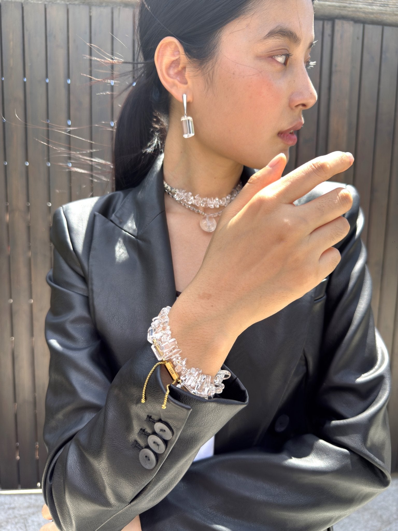 The GEOMETRICAL CUT - Brazilian Clear Quartz nuggets on 18K gold plated slider clasp with Mantra.