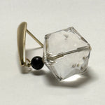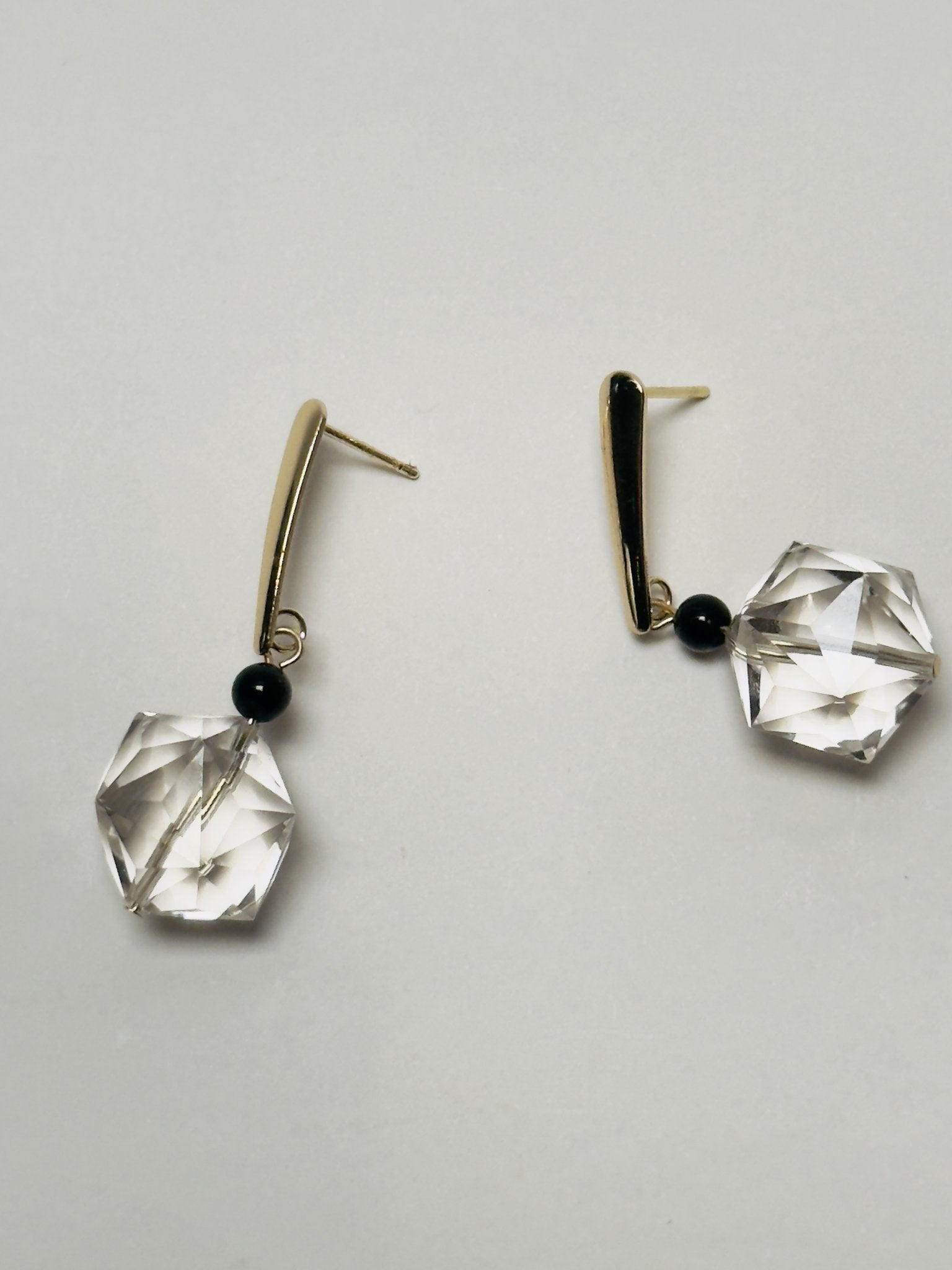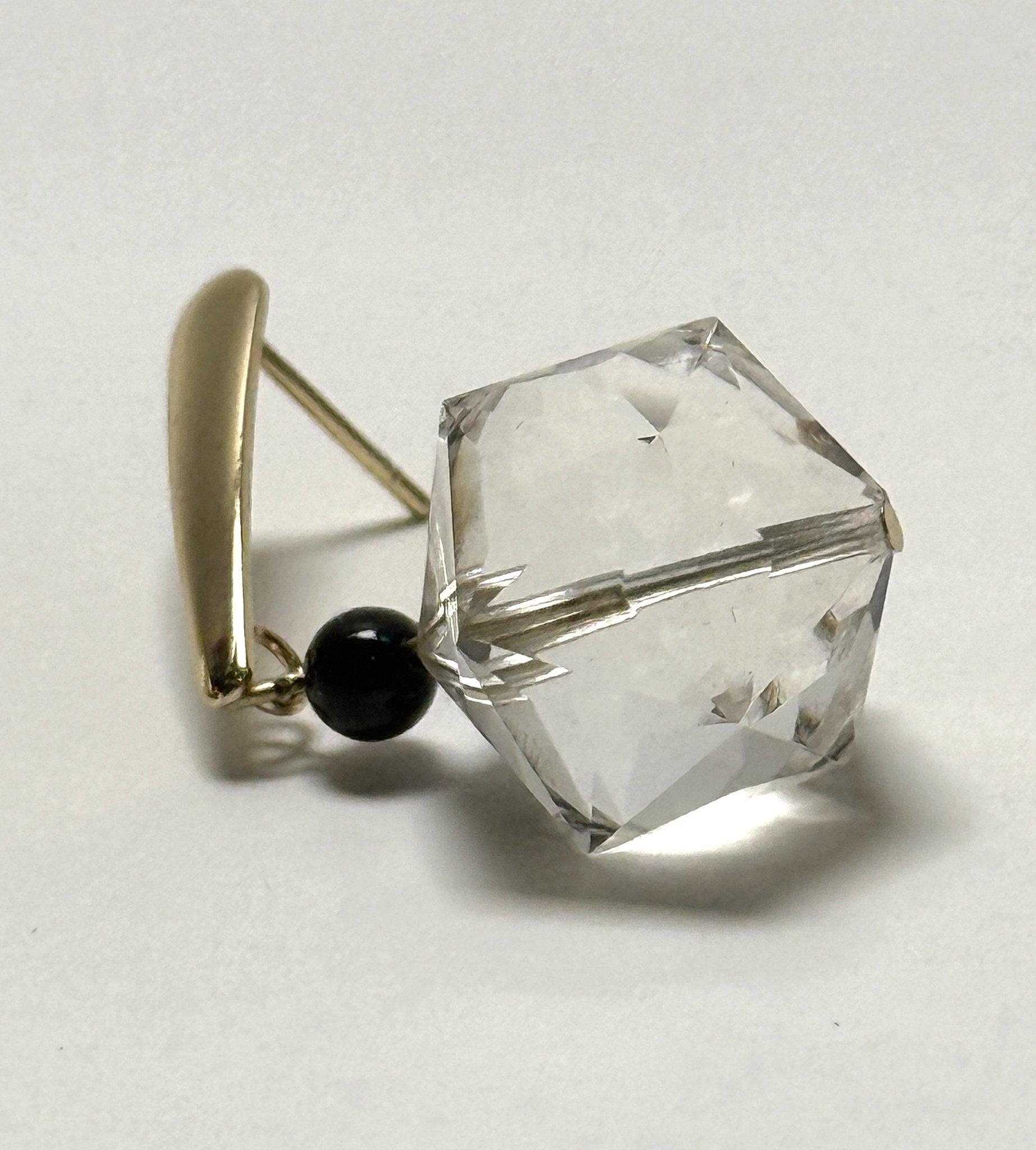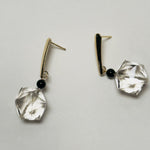 The GEOMETRICAL CUT - Brazilian Prism Faceted Clear Quartz and mini black agate bead on 18K gold plated earrings hook.
