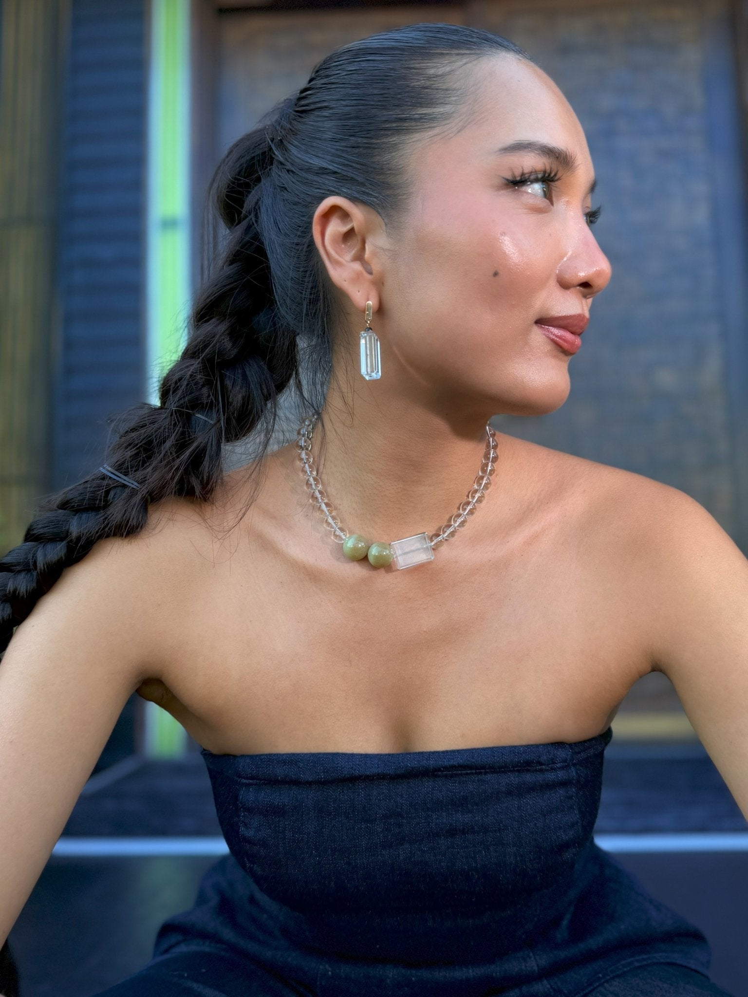 Brazilian clear quartz sphere amplifies your energy. Rectangular clear quartz sharpens focus laser-sharp. Sugar jade brings gentle grounding, that whisper of peace that says you’re exactly where you need to be. Three elements. One masterpiece.