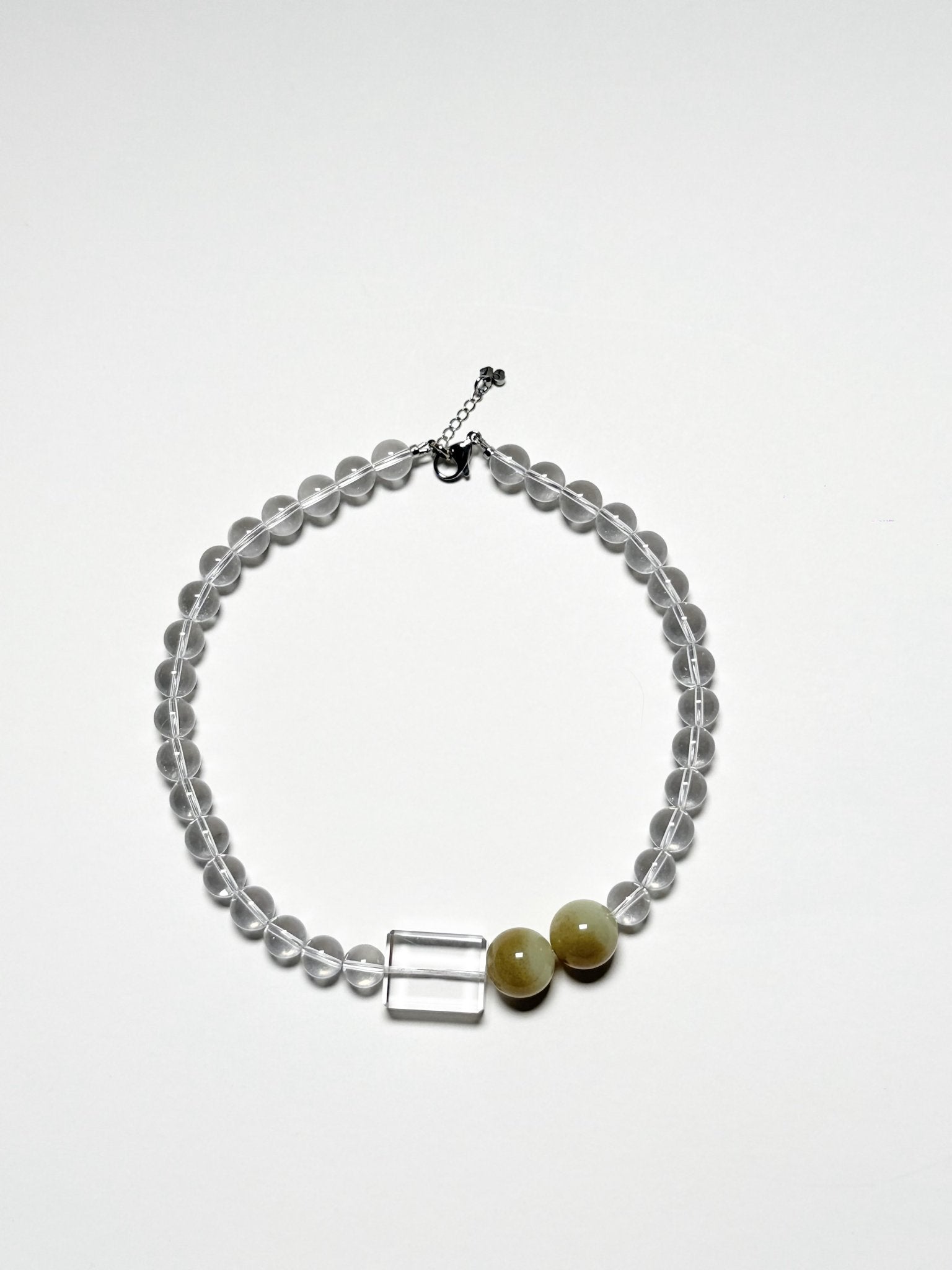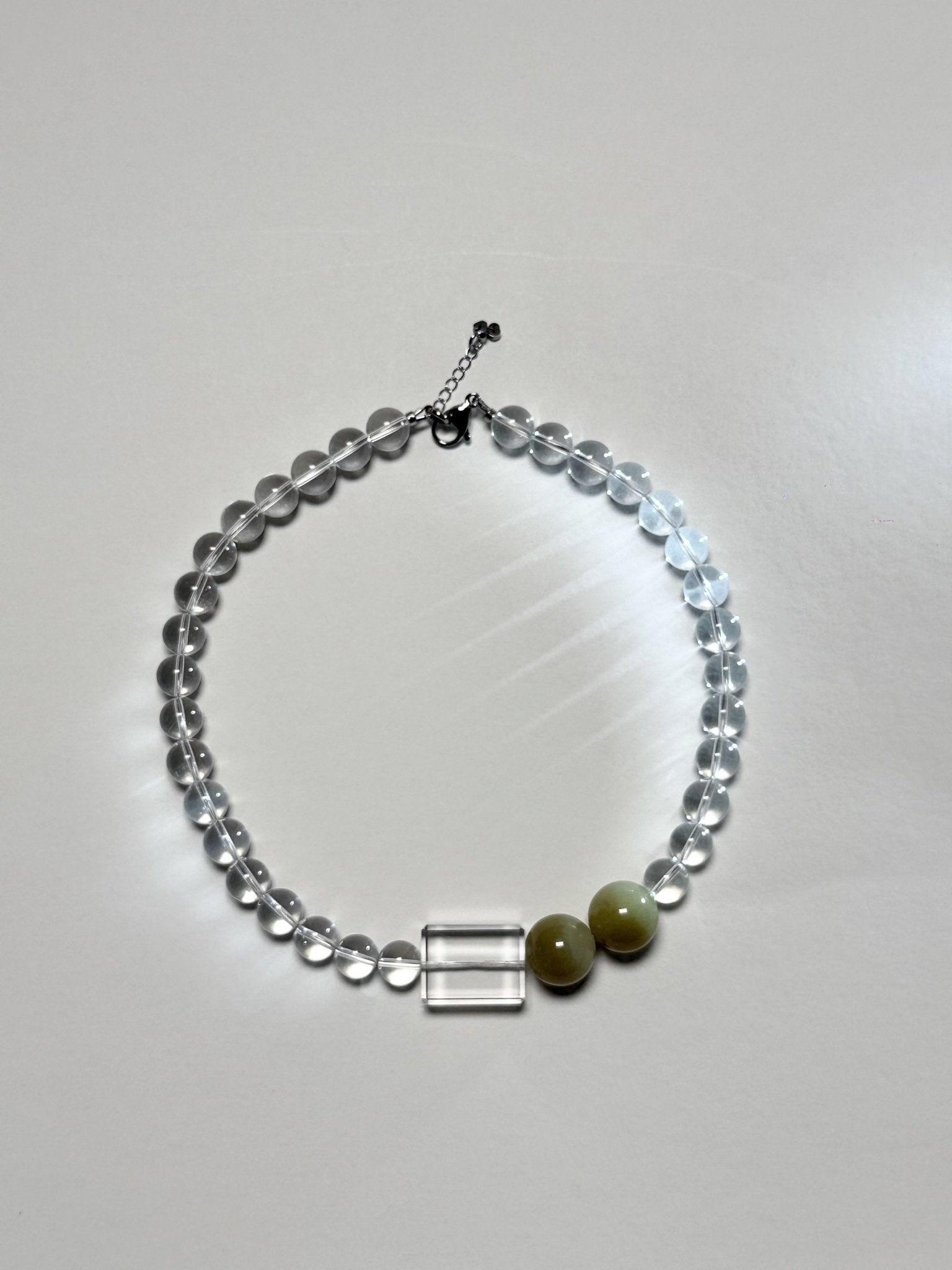 Type: Necklace | Crystals: Brazilian Mixed Cut Clear Quartz with Sugar Jade | Hardware: Lobster clasp dipped in silver bath with extension chain (5cm) | Attuned: Yes