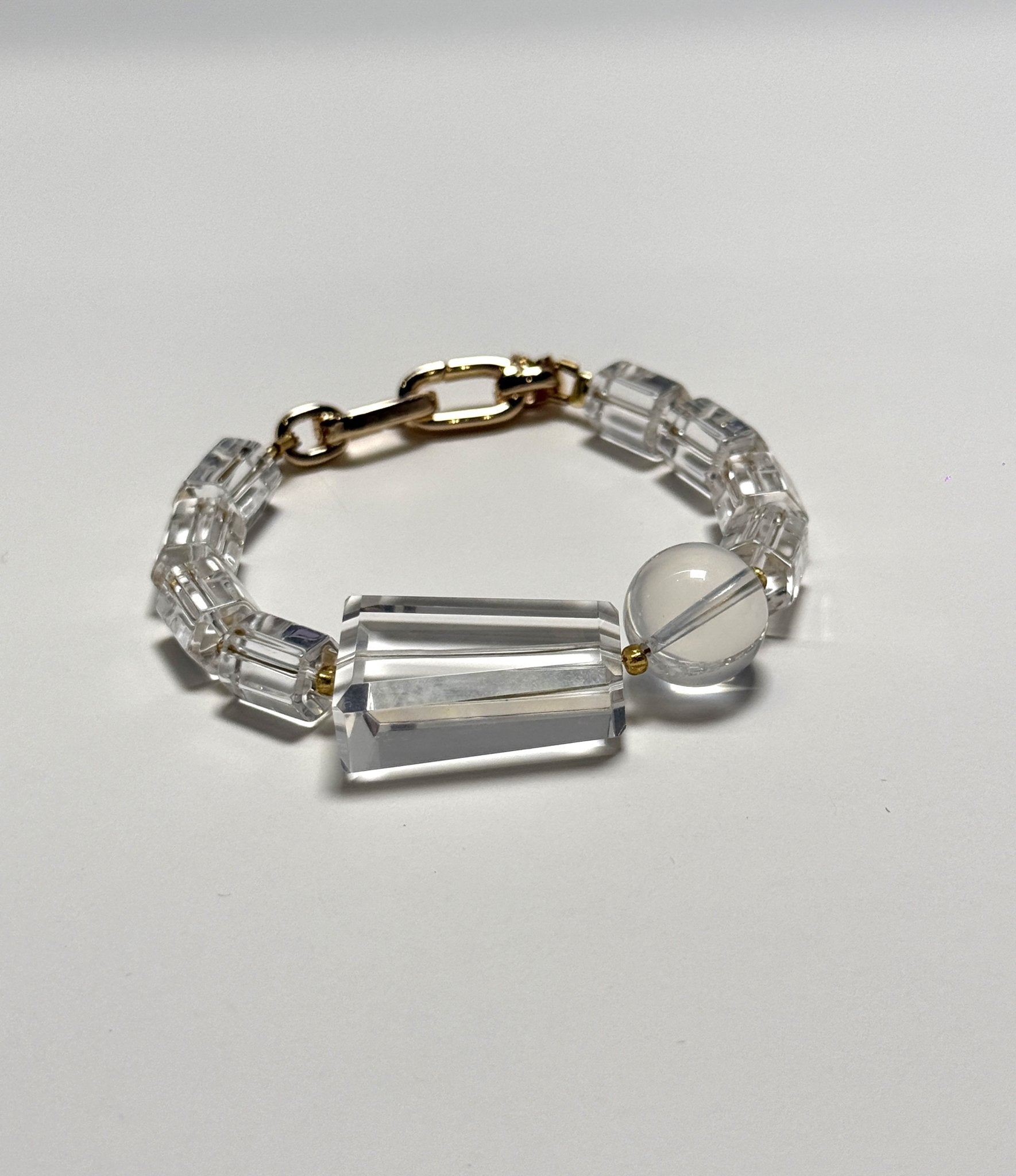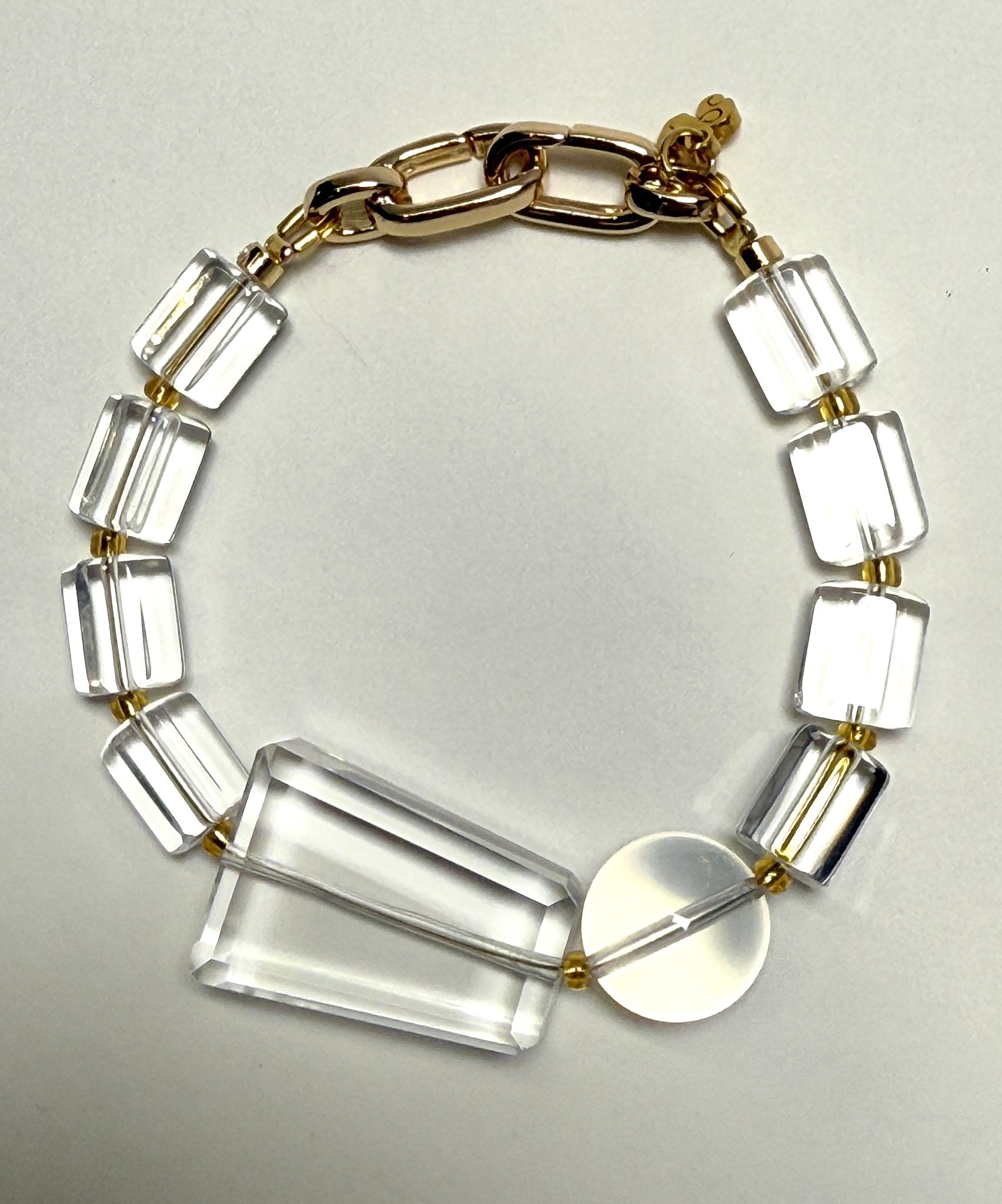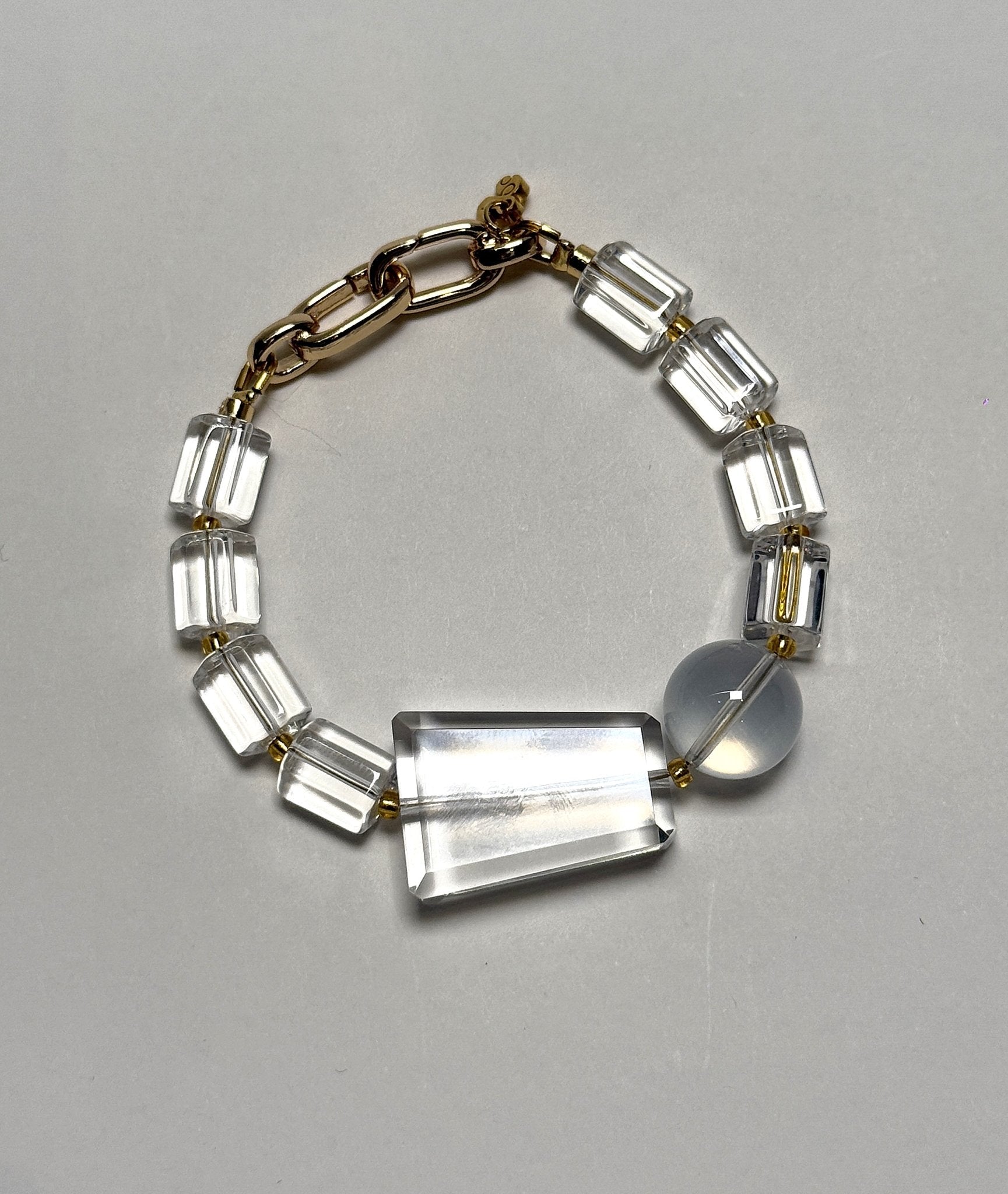 Type: Bracelet | Crystals: Mixed Geometric Cut Brazilian Clear Quartz | Hardware: Interloop clasp dipped in 18K gold bath | Attuned: Yes