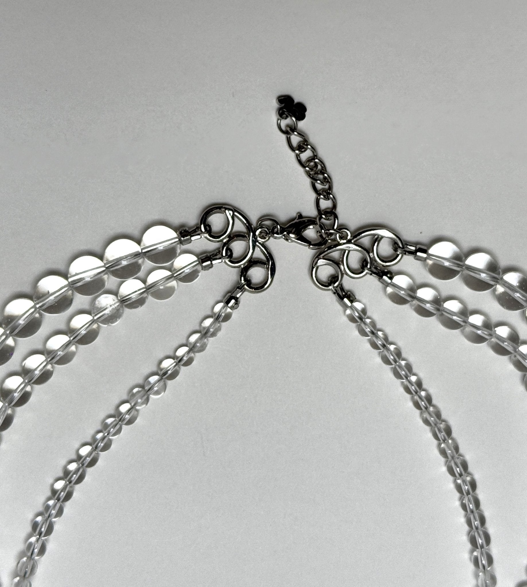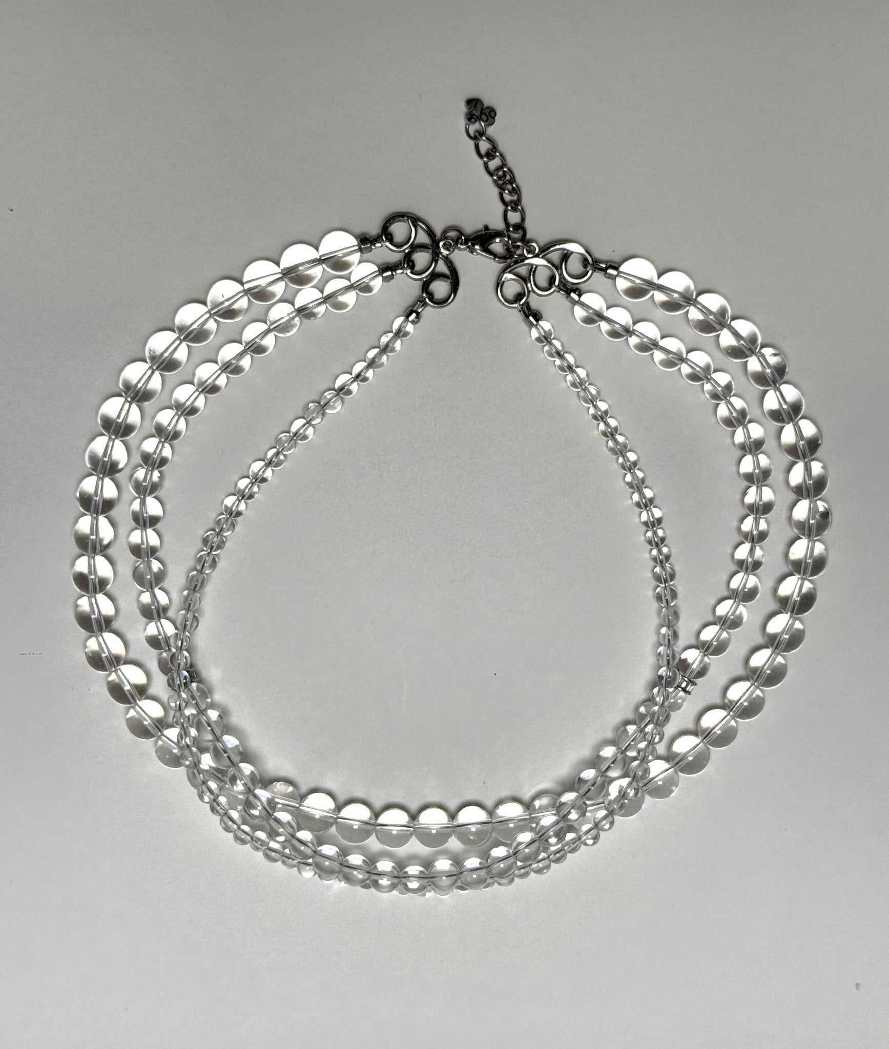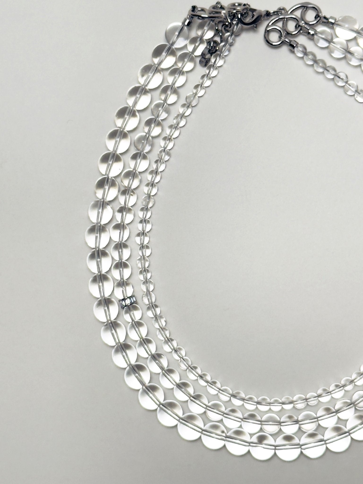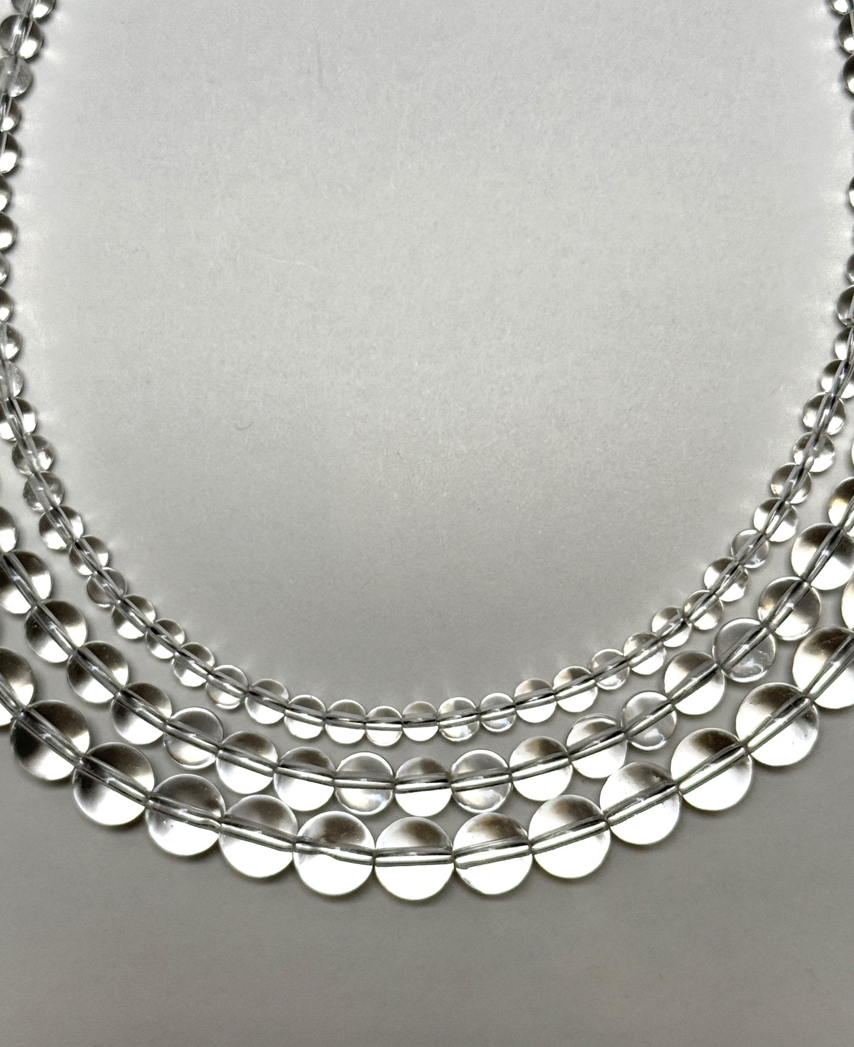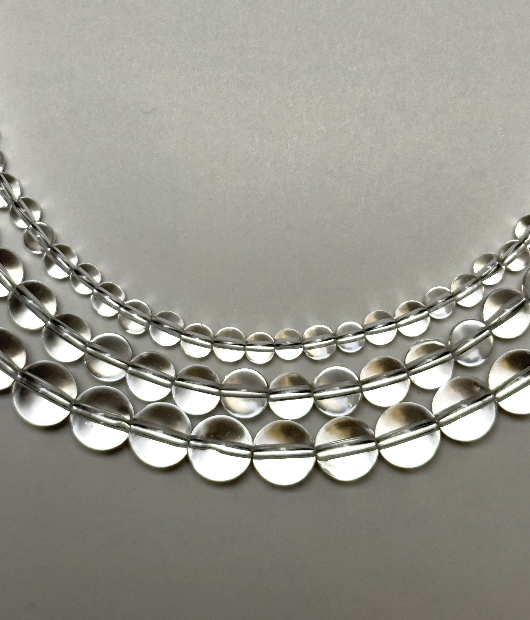 The ROUND CUT - Brazilian Round Sphere Clear Quartz on a cascading 3 tier