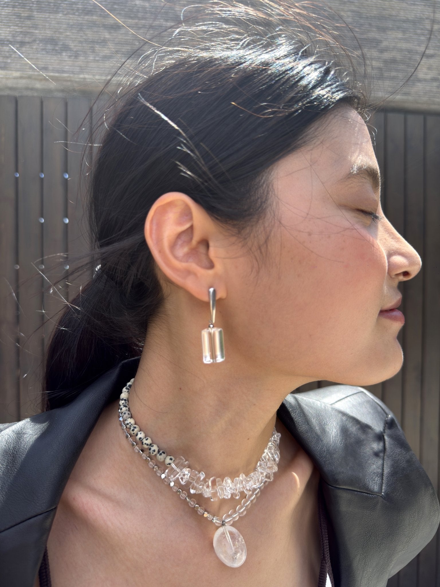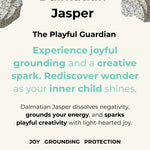 Brazilian Clear quartz nuggets amplify your intention with luminous clarity. Dalmatian Jasper brings playfulness, protection, and a reminder that life’s beauty is in its spotted imperfections. Together they’re the dynamic duo that says you can be serious about your goals and laugh while chasing them.