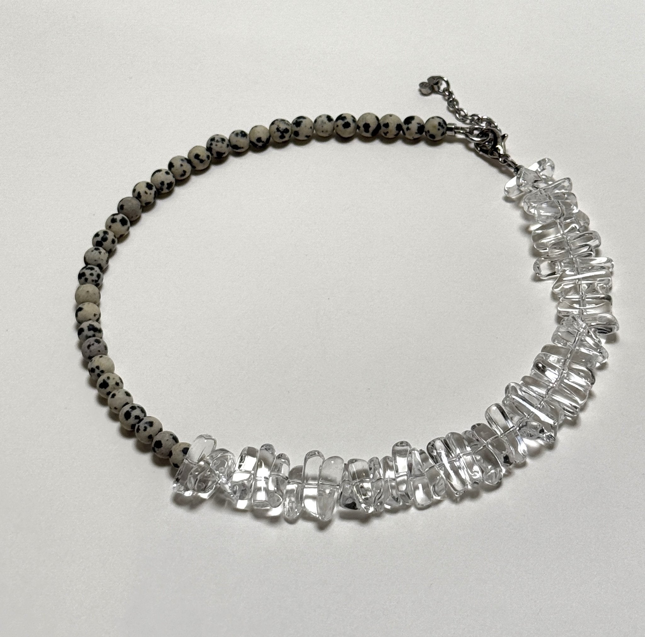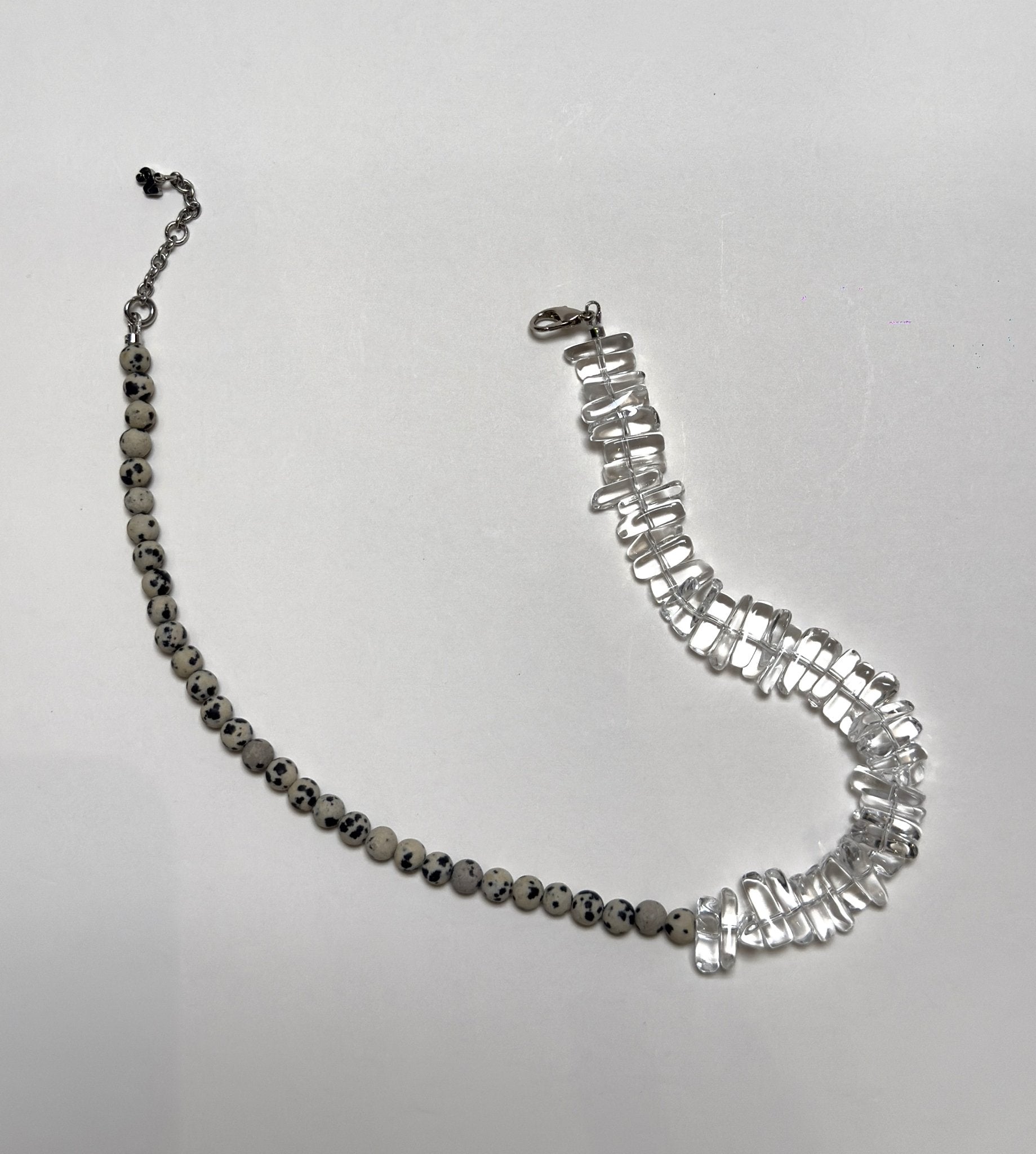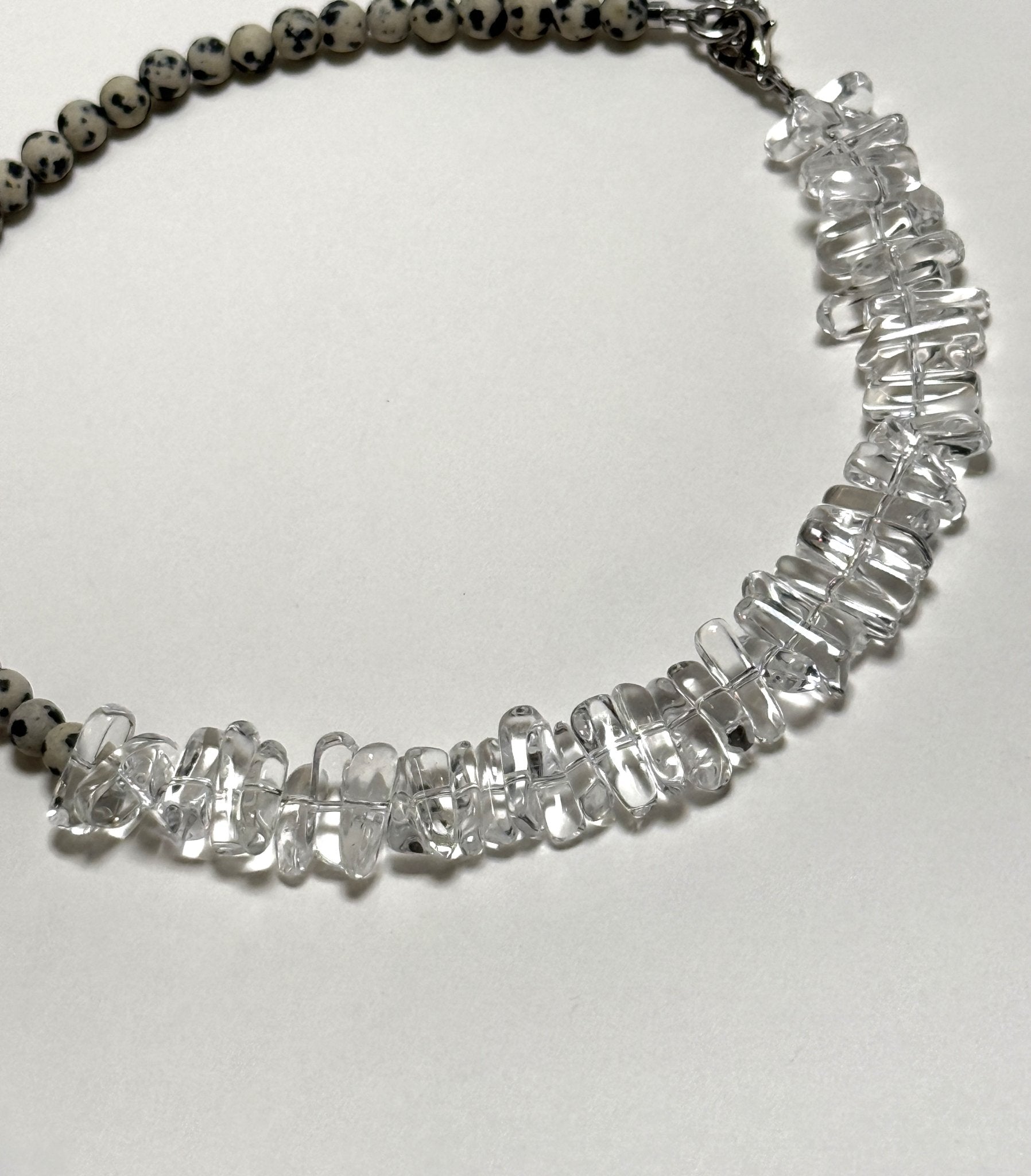 IT'S A JOYRIDE NECKLACE | Brazilian Clear Quartz nuggets & round sphere Dalmatian Jasper