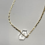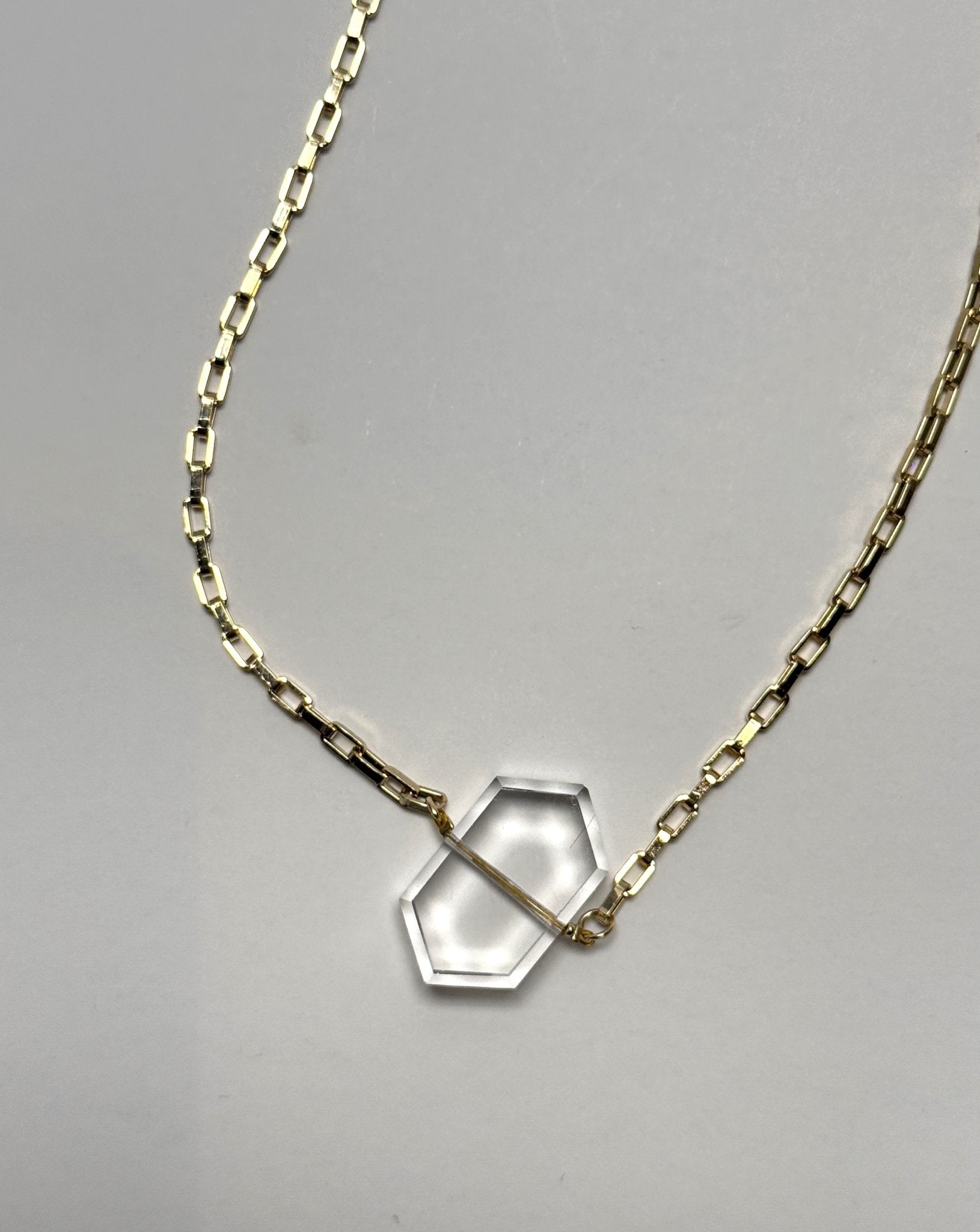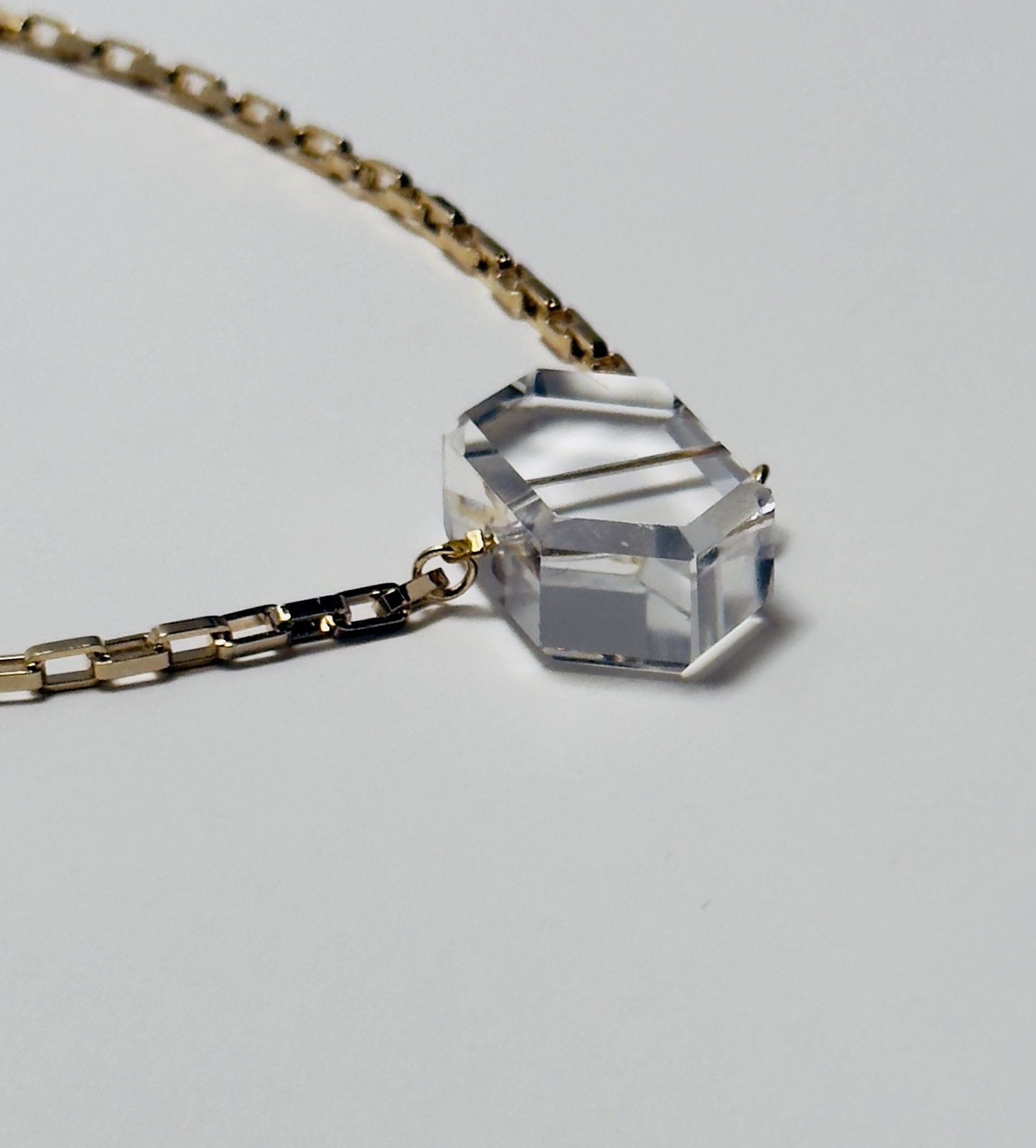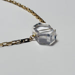 The GEOMETRICAL CUT - Brazilian Hexagon Faceted Clear Quartz on chain dipped in 18K gold bath.