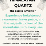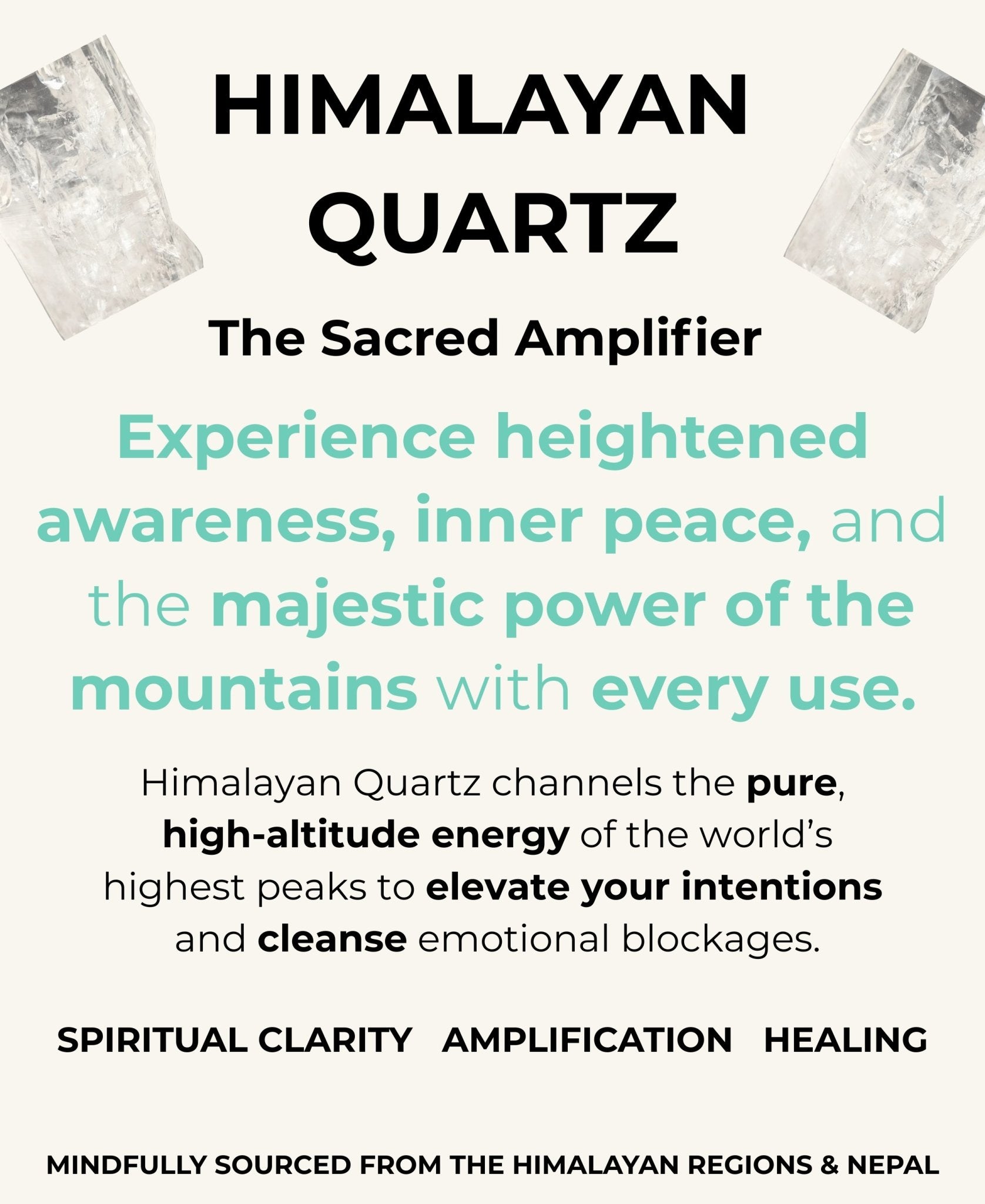Himalayan quartz carry the ancient wisdom of the Himalayas - sourced from the roof of the world where enlightenment was born. These aren’t ordinary crystals. They’re infused with 300+ million years of mountain energy, higher elevation = higher vibration.