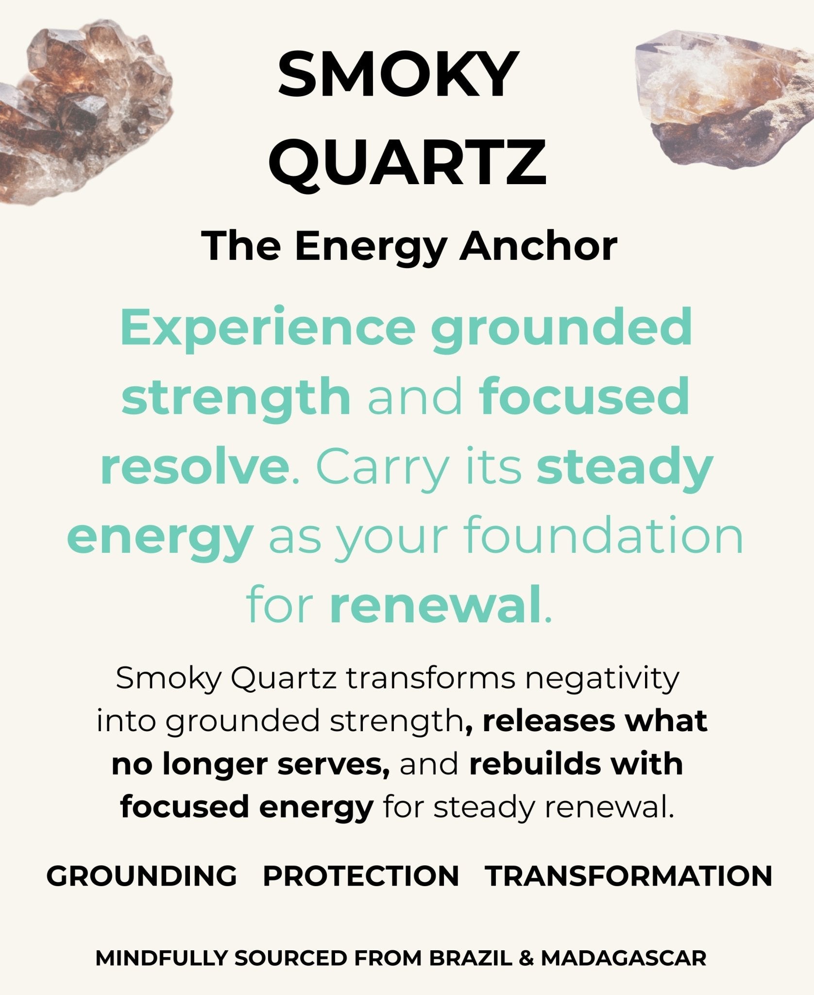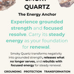 Brazilian Smoky quartz lantern faceted glows like a midnight beacon, grounding and intensely calming. Brazilian clear quartz rectangles and spheres amplify clarity into laser focus. Together: smoky quartz filters, clear quartz sharpens, and you become magnetic.