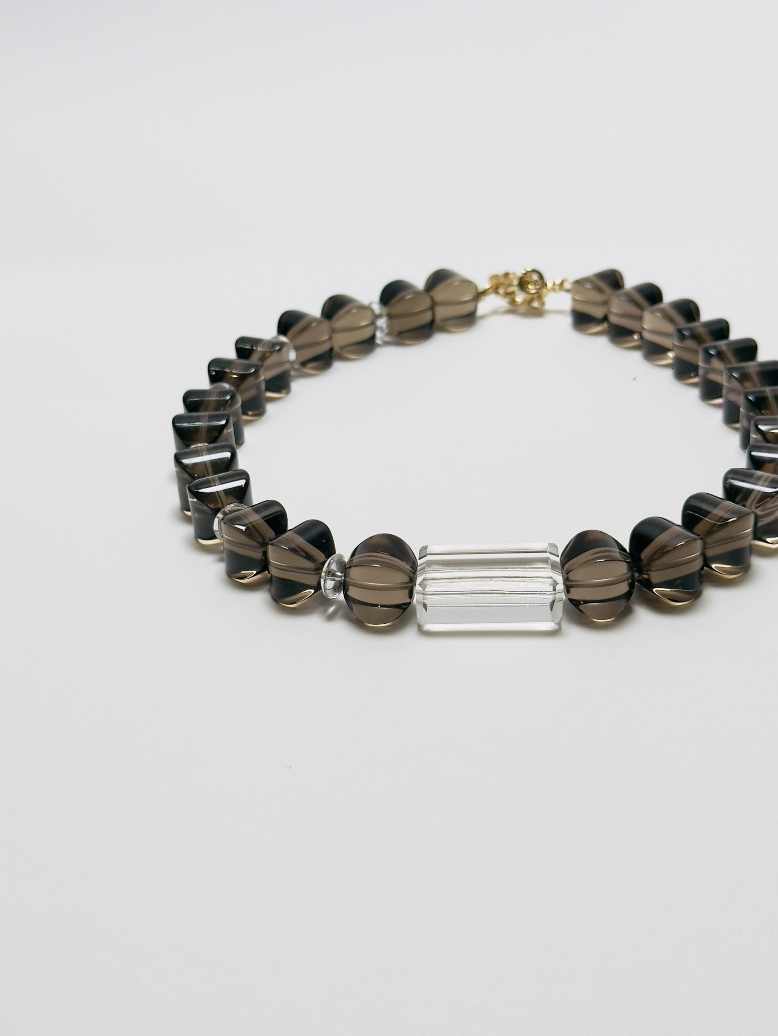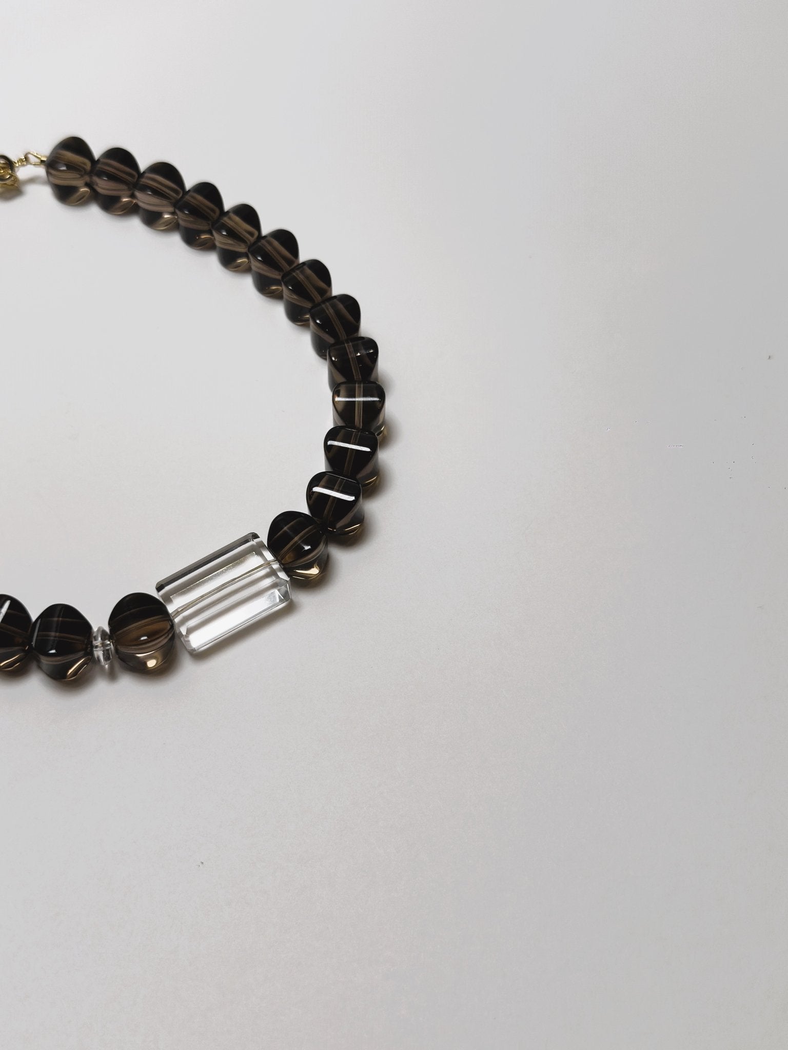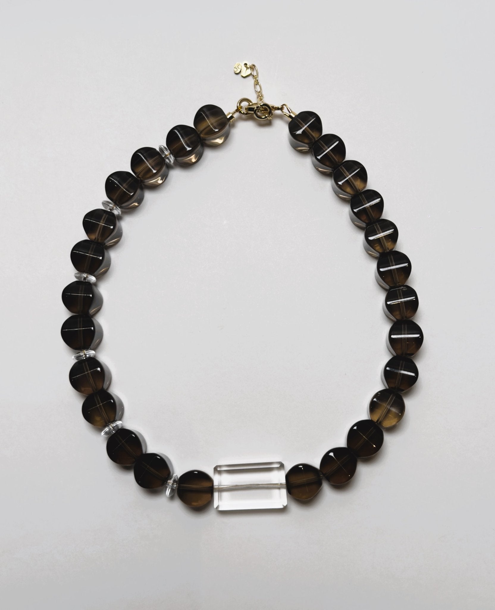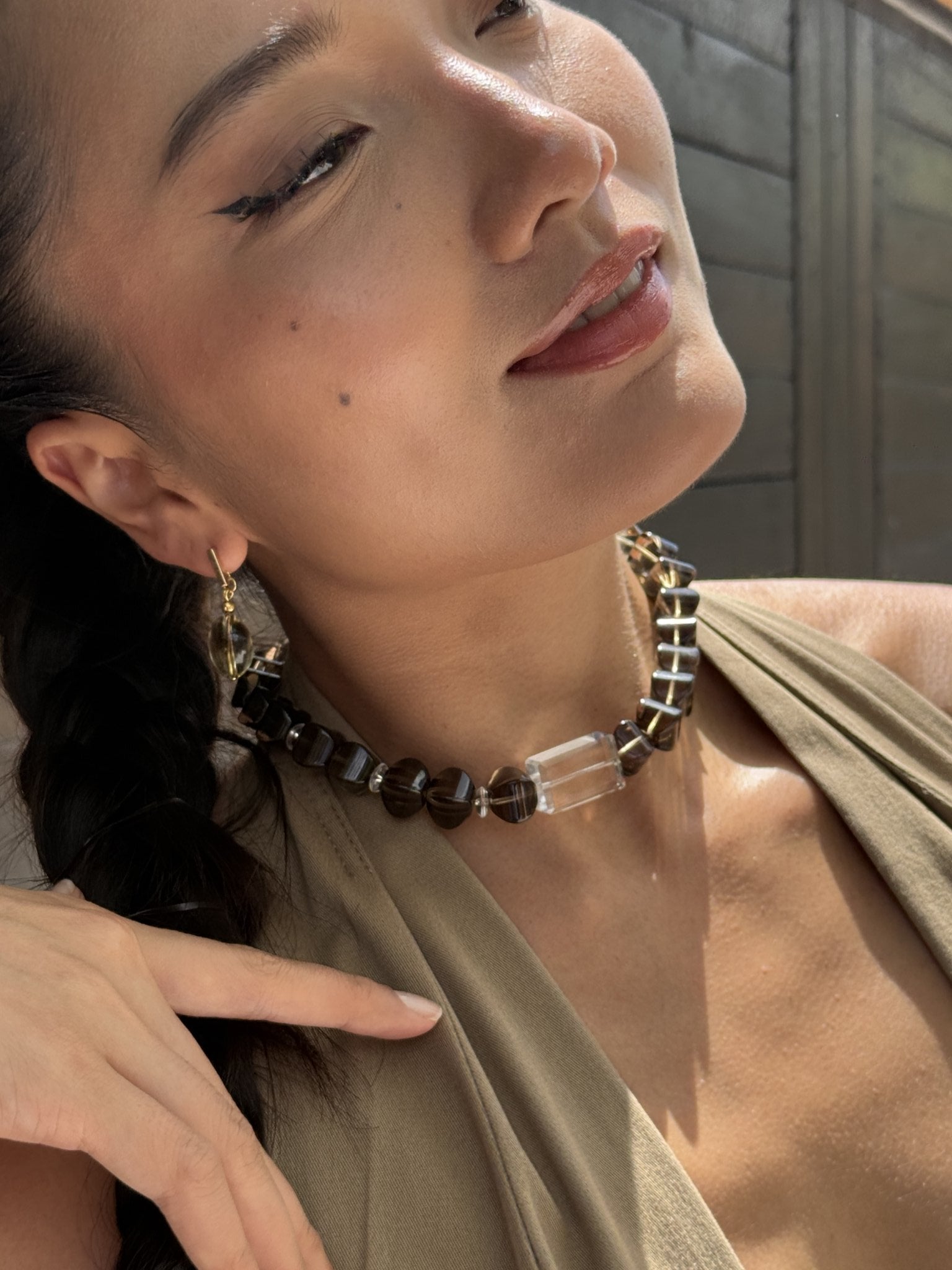 Type: Necklace | Crystals: Brazilian Lantern Faceted Smoky Quartz & Rectangular Cut Clear Quartz | Hardware: Lobster clasp dipped in 18K gold bath with extension chain (5cm) | Attuned: Yes