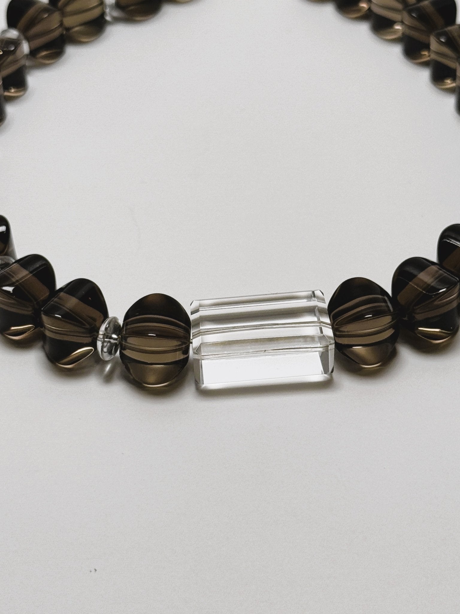 HEY TRANSFORMER NECKLACE | Brazilian Lantern Faceted cut Smoky Quartz & Rectangular cut Clear Quartz