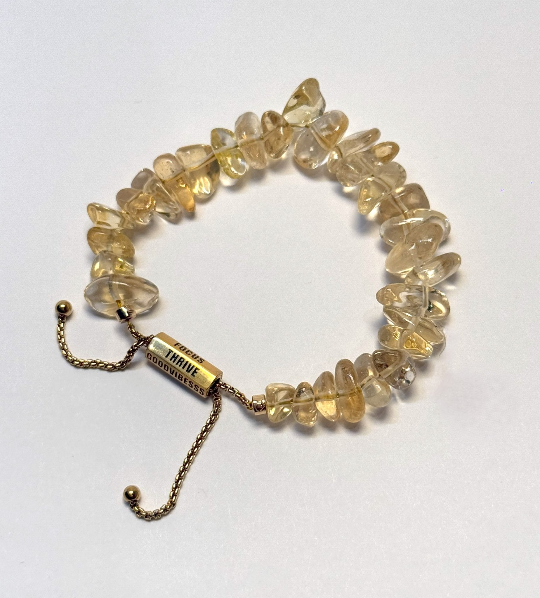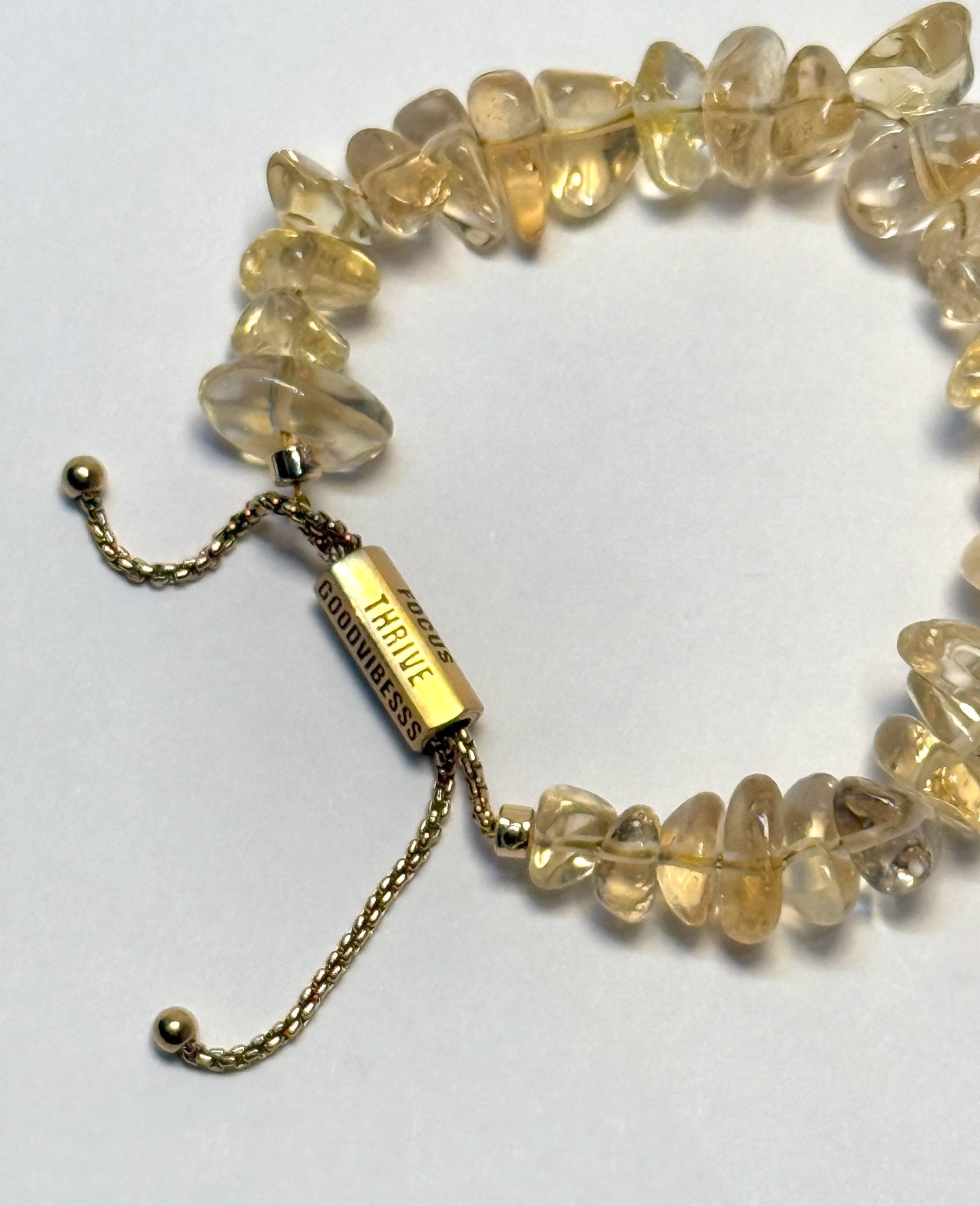 Type: Bracelet | Crystals: Brazilian Citrine Nuggets | Hardware: 18K Gold-Plated Slider Clasp with Mantra | Attuned: Yes