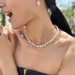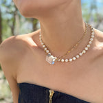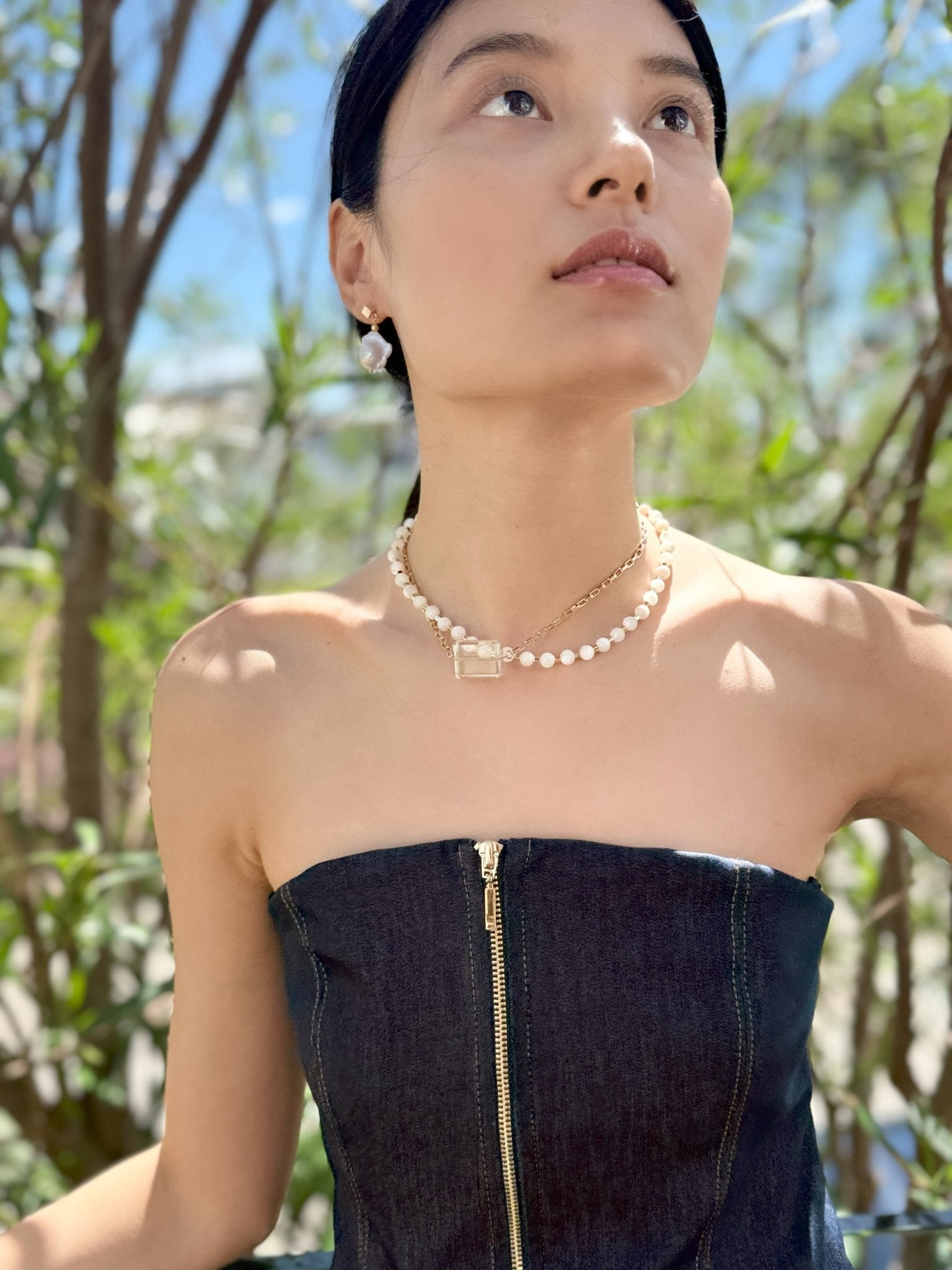 Brazilian clear quartz rectangular faceted is clarity distilled to its essence, unwavering, direct, unapologetically precise. On a delicate 18K gold plated chain, it’s minimalist luxury that refuses to whisper. It speaks.