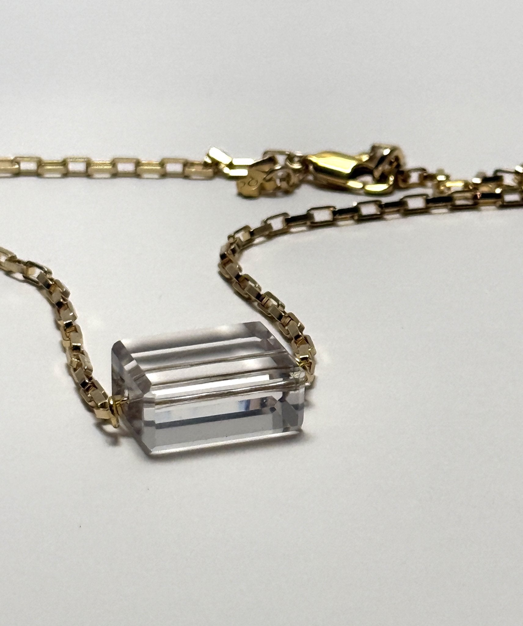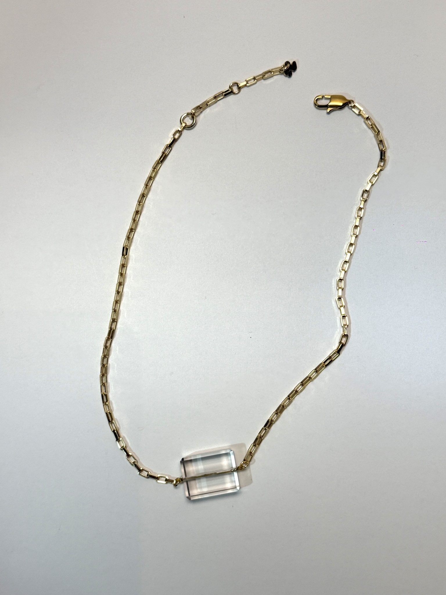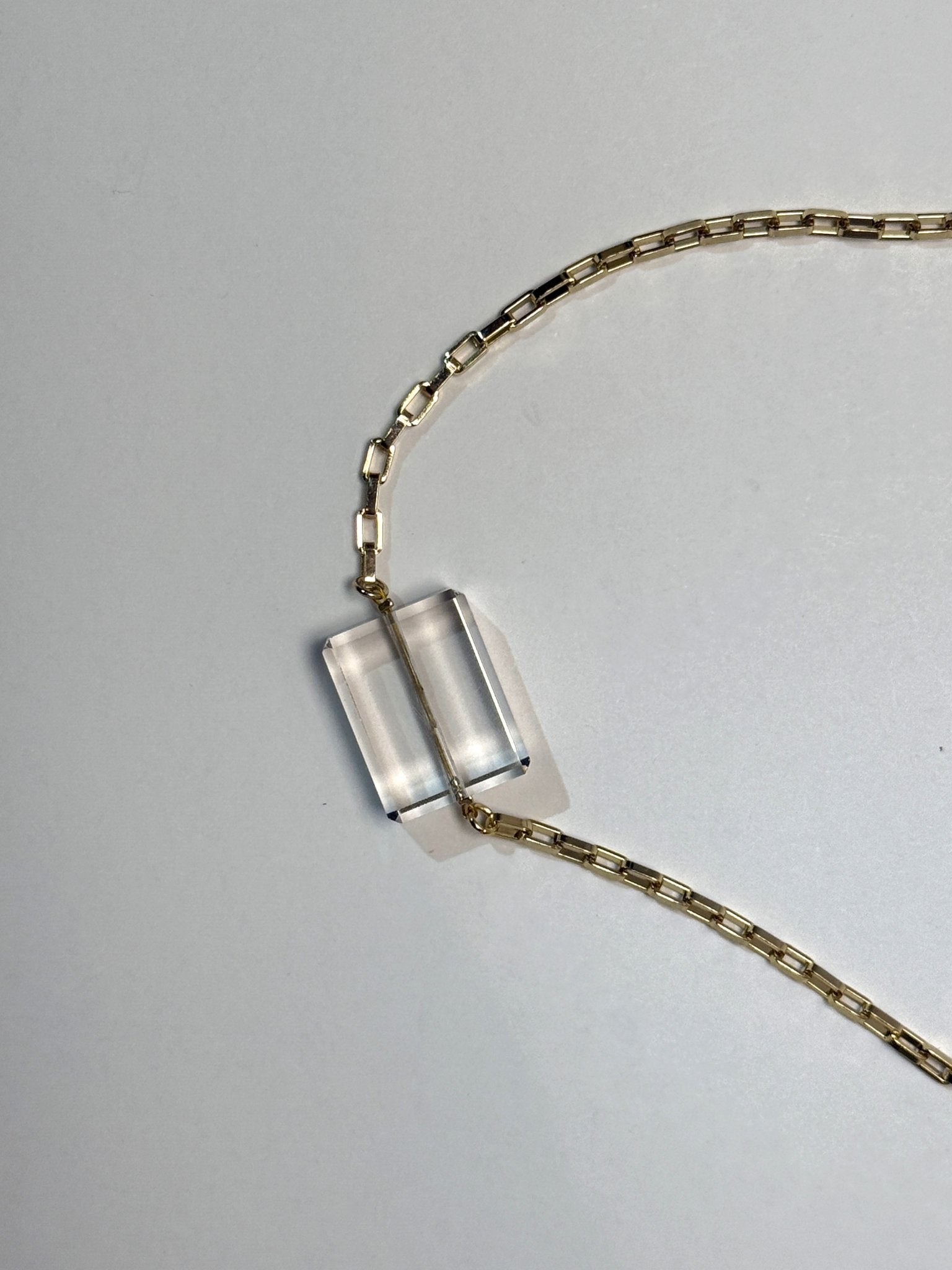 Type: Necklace | Crystals: Brazilian Rectangular Faceted Clear Quartz | Hardware: Chain dipped in 18K gold plated bath with extension chain (5cm) | Attuned: Yes