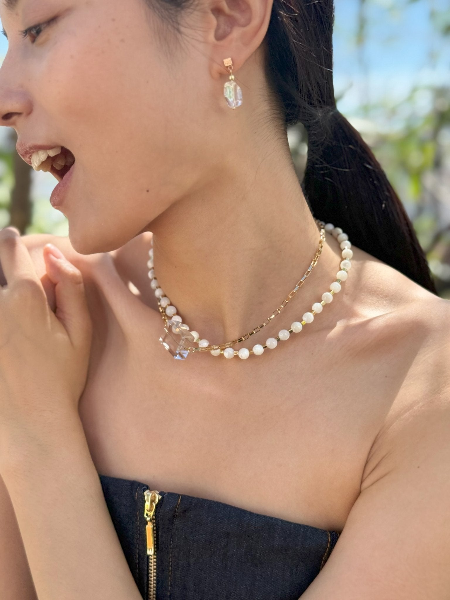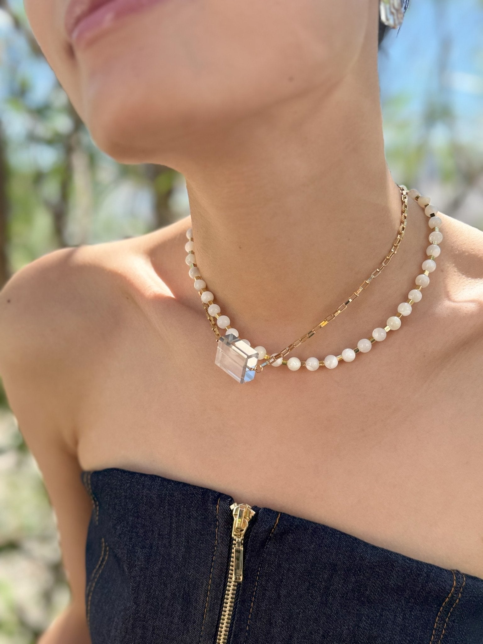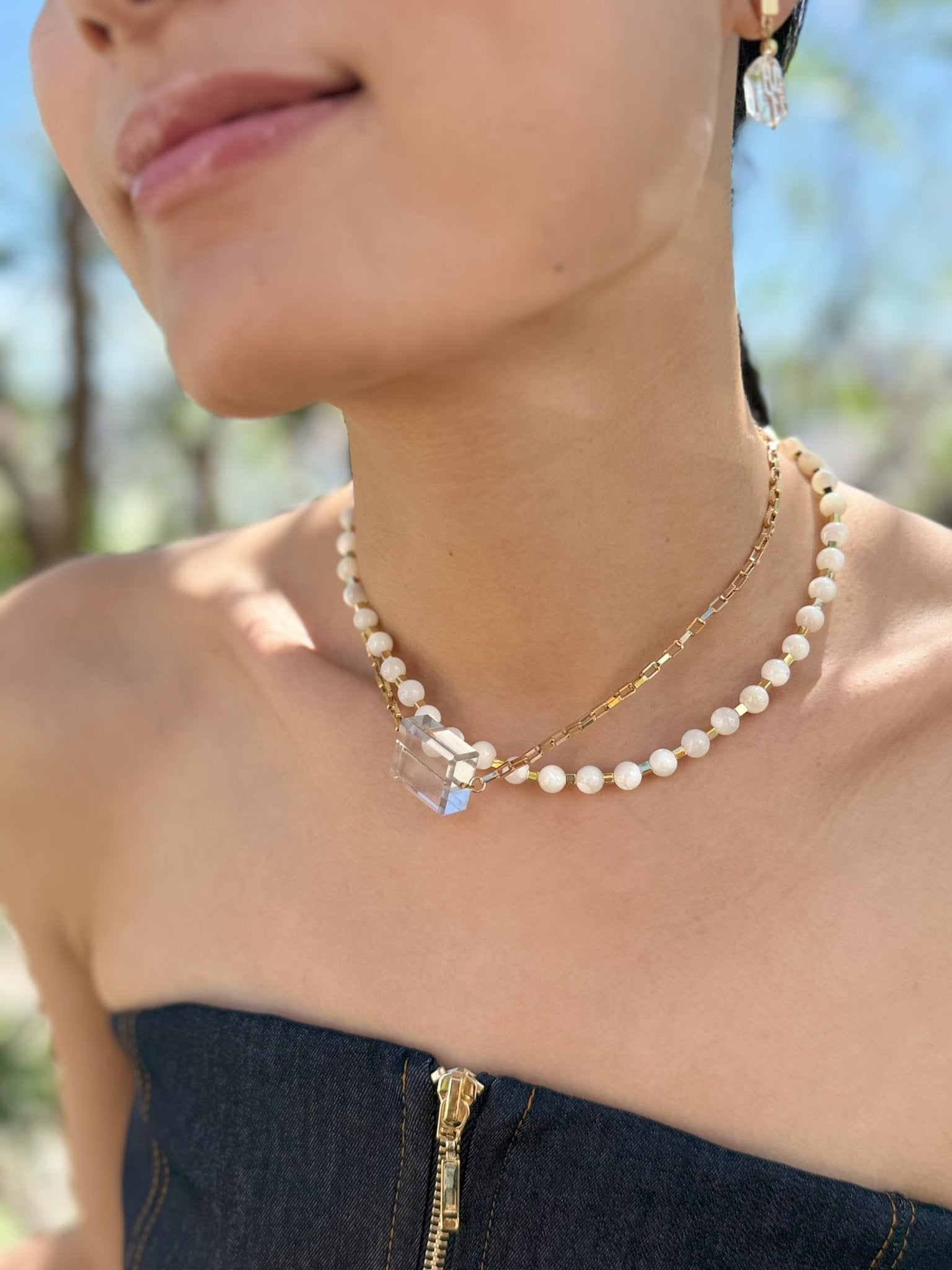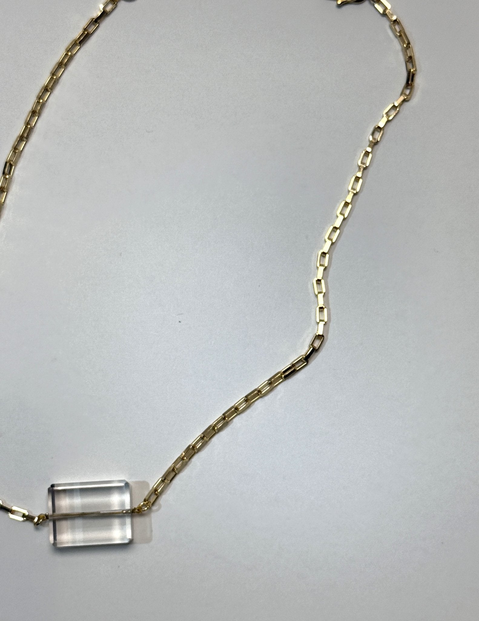 Type: Necklace | Crystals: Brazilian Rectangular Faceted Clear Quartz | Hardware: Chain dipped in 18K gold plated bath with extension chain (5cm) | Attuned: Yes
