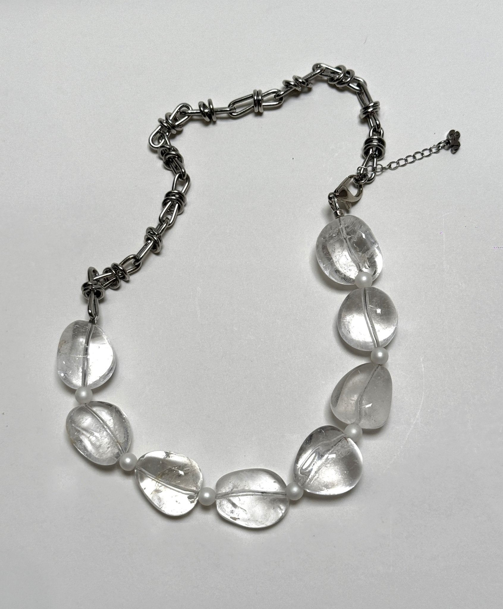 Brazilian polished oval milky quartz channels luminous clarity with intentional depth. The ethereal inclusions whisper that clarity isn’t about perfection; it’s about intention. Paired with sleek silver chain, it’s the statement piece for those who believe less is more, but when it is worn, it’s everything.
