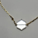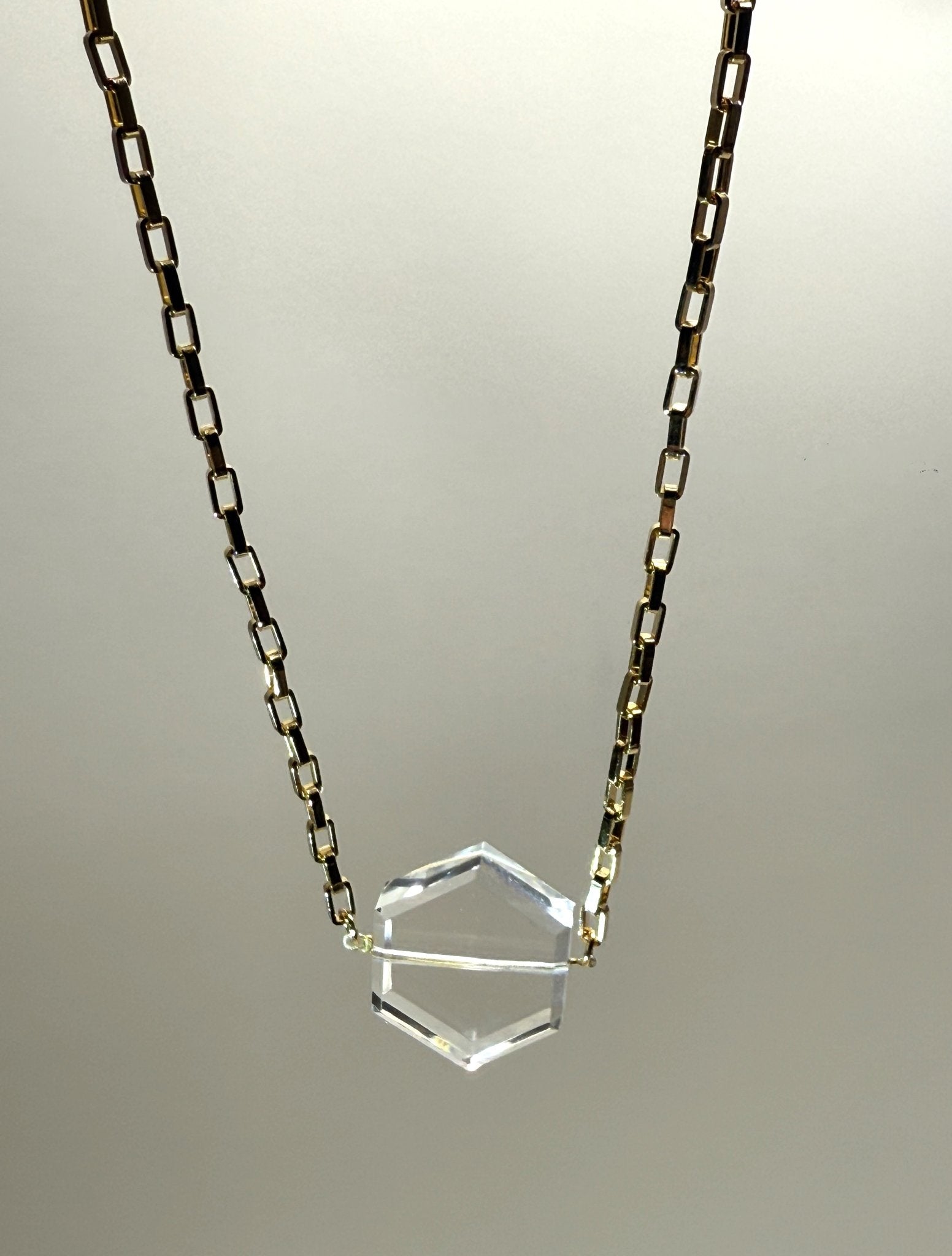 The GEOMETRICAL CUT - Brazilian Octagon Faceted Clear Quartz pendant on chain dipped in 18K gold bath.