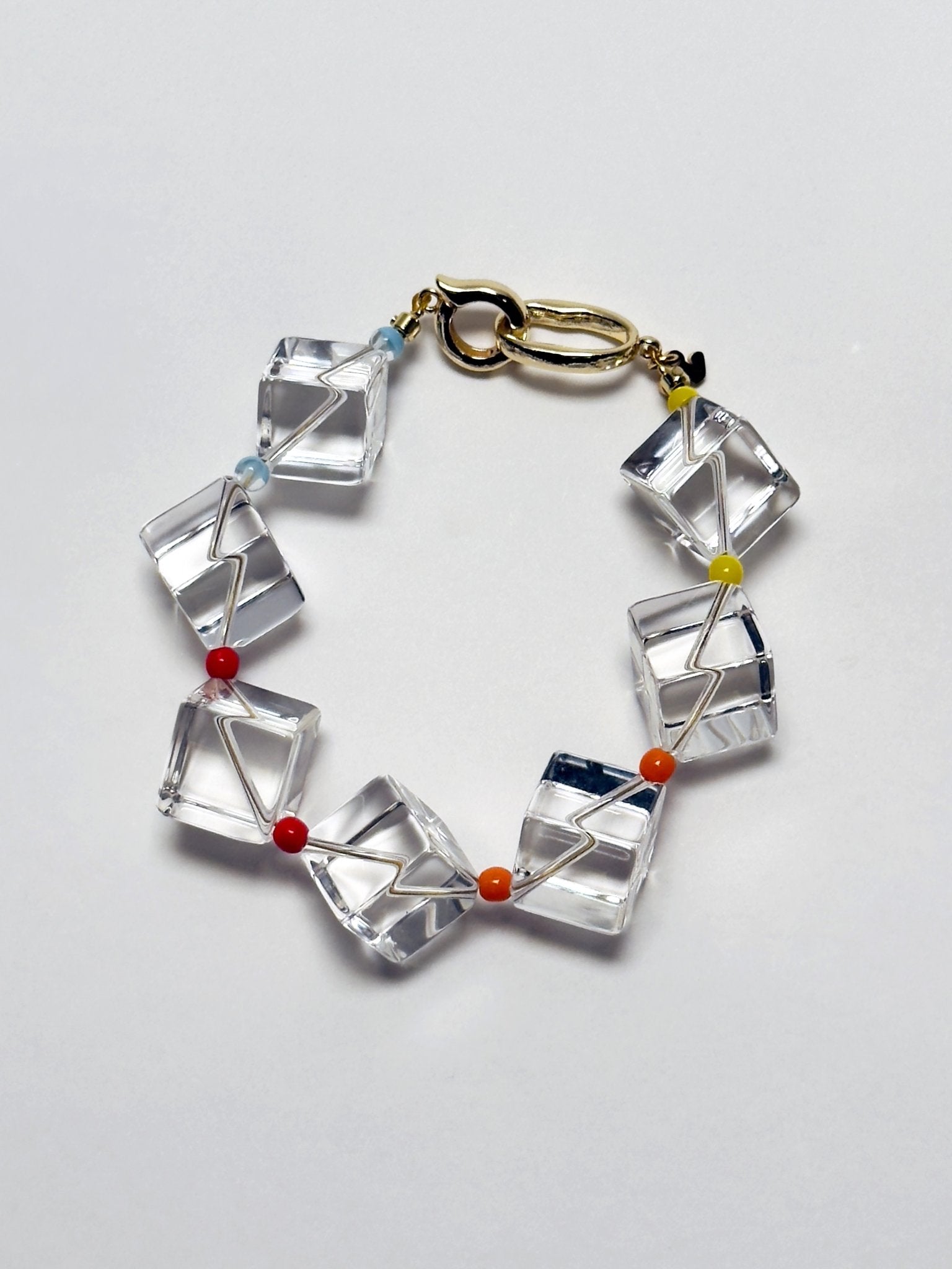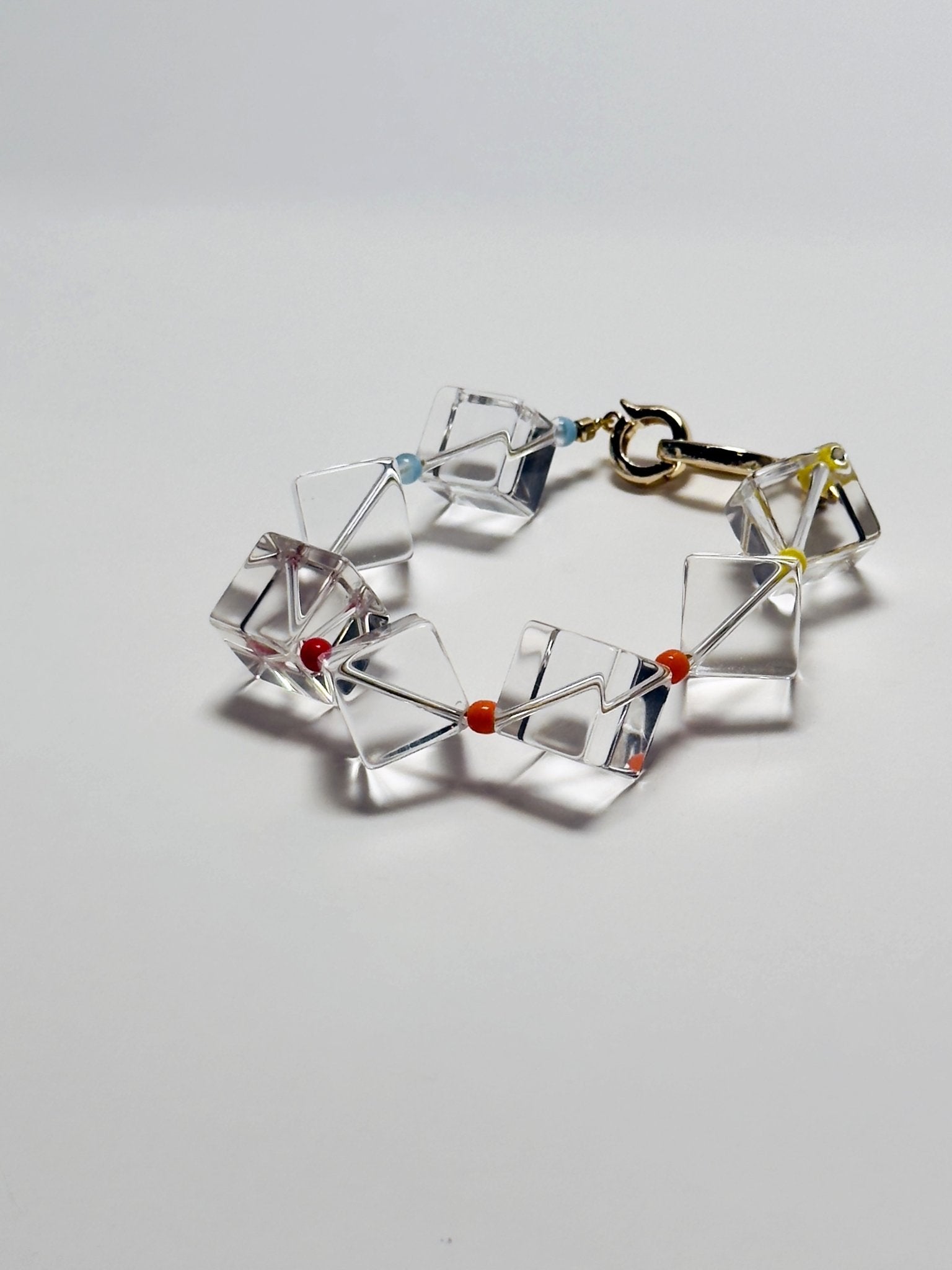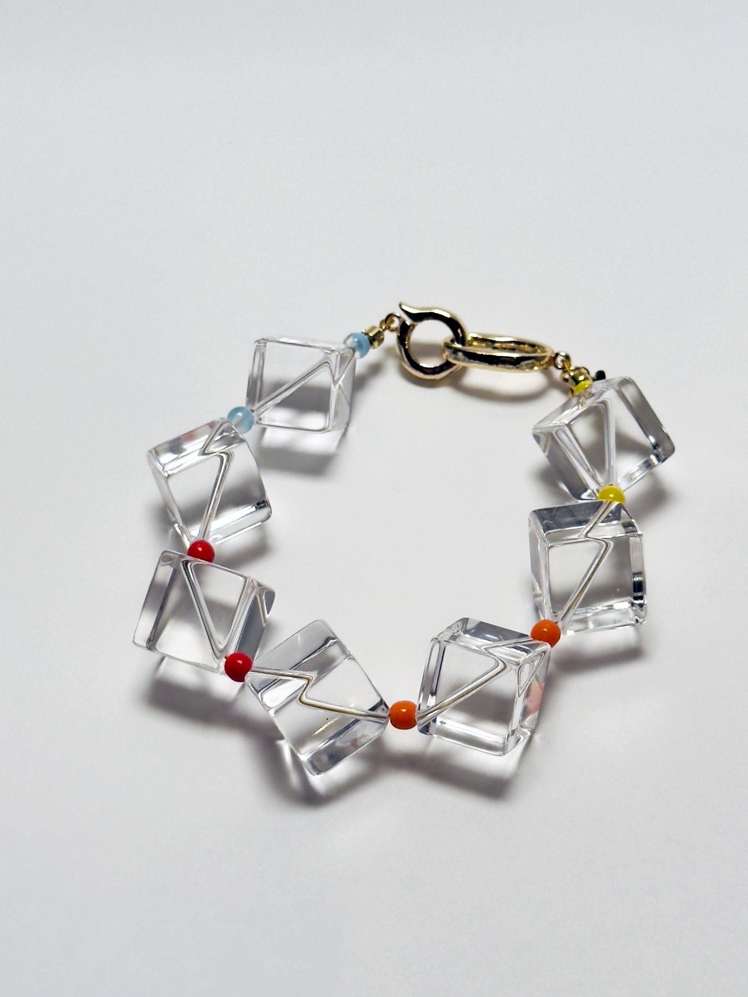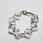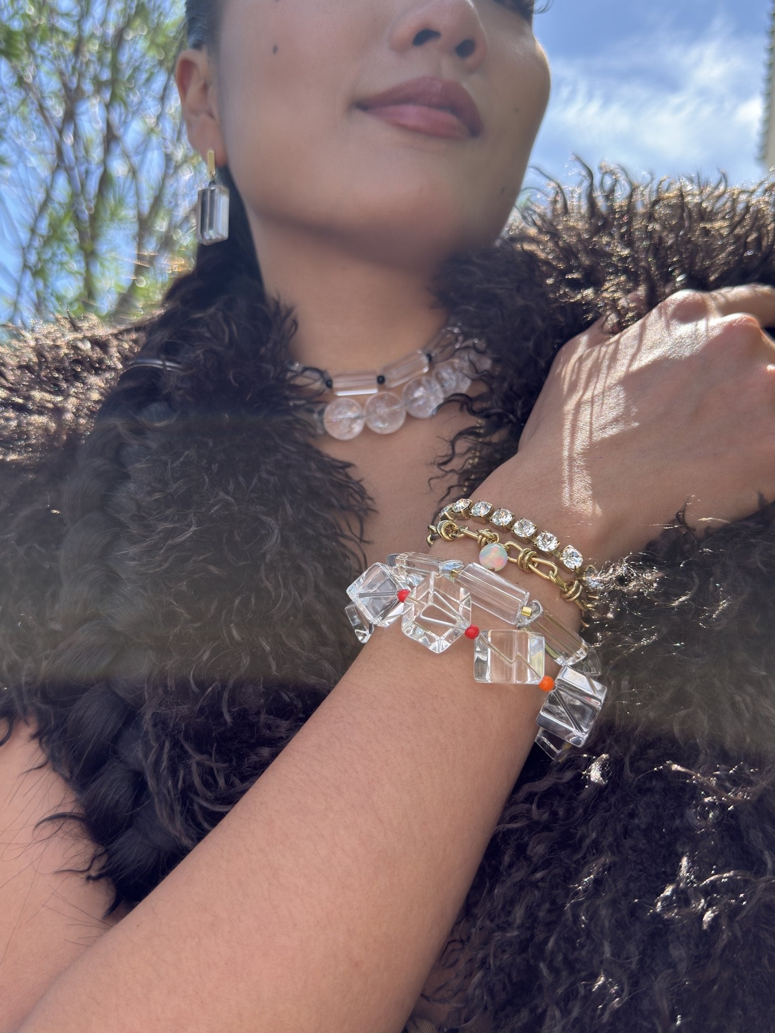 Type: Bracelet | Crystals: Brazilian Cushion faceted Clear Quartz | Hardware: Interloop clasp dipped in 18K gold bath | Attuned: Yes