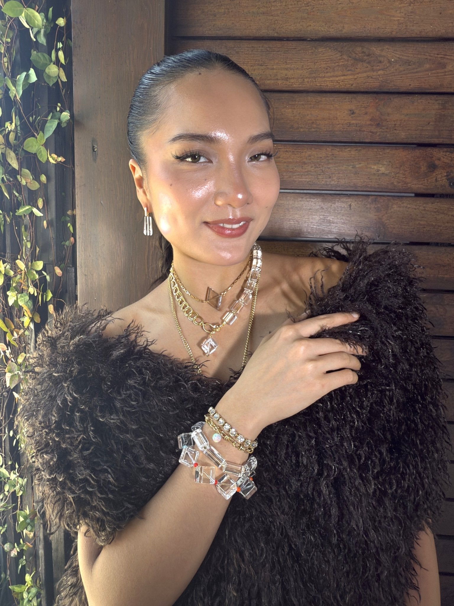 Brazilian clear quartz cushion-faceted squares catch light from every angle, amplifying clarity and sharpening your focus. Each geometric piece channels luminous intention. Together they’re architectural elegance, structured yet radiant, calculated yet spiritual.