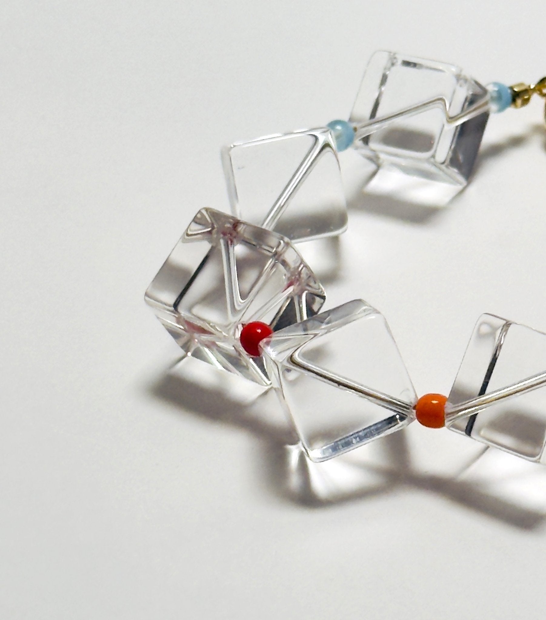 The GEOMETRICAL CUT - Cushion faceted Brazilian Clear Quartz & mini colored beads on 18K gold plated clasp.