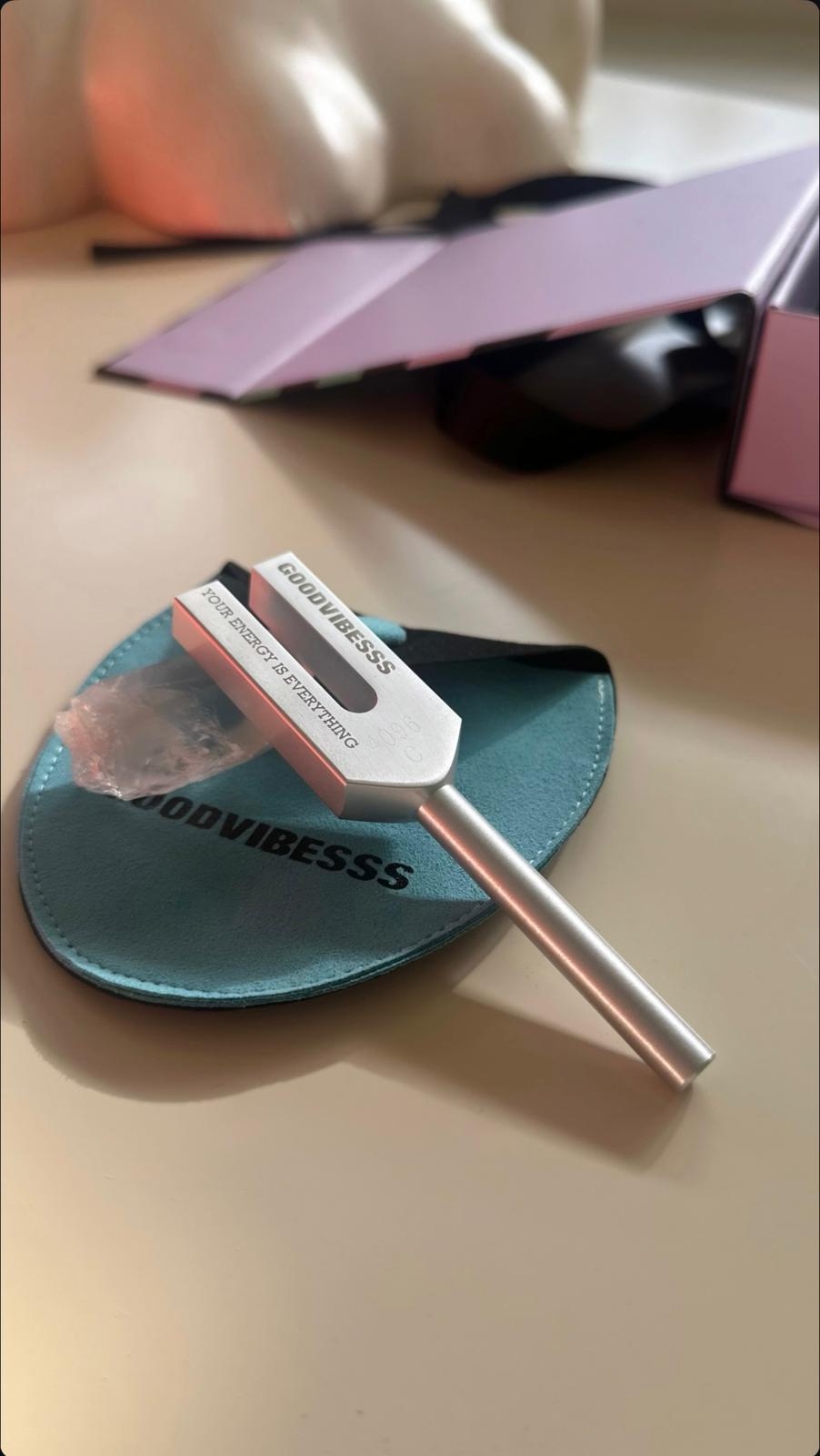 Sound meets crystal meets abundance. Clear quartz amplifies 4096Hz : the angel’s frequency, while GOODVIBESSS (Number 8 energy) channels transformation and prosperity. Eliminate negativity and elevate your vibration everywhere: home, office, hotel rooms, while traveling. Engraved with GOODVIBESSS, every strike amplifies the power of 8’s transformational frequency. Premium aluminum. Pure intention. Your portable sanctuary, your abundance awakened.